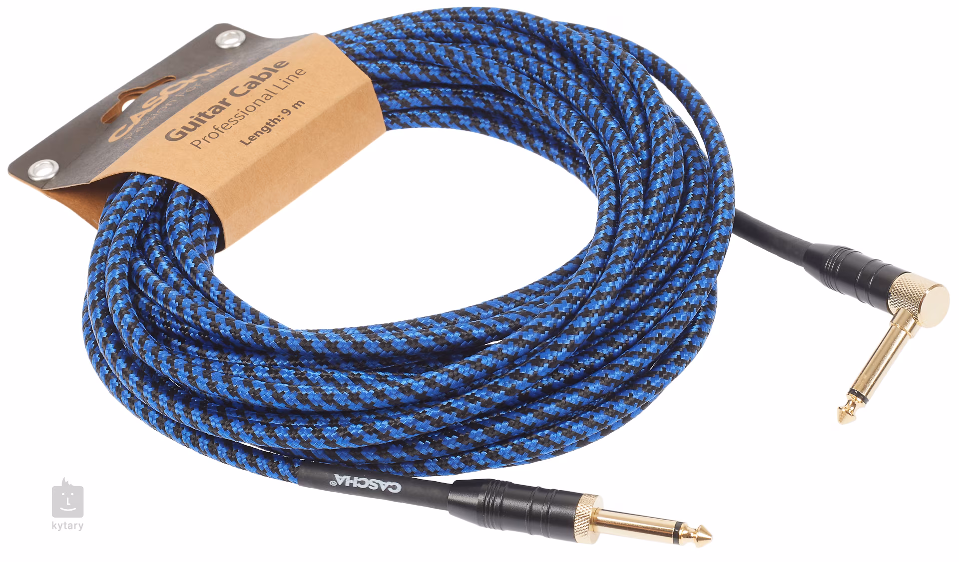 Cascha Professional Line Guitar Cable, Angled, Tweed Blue, 9 m