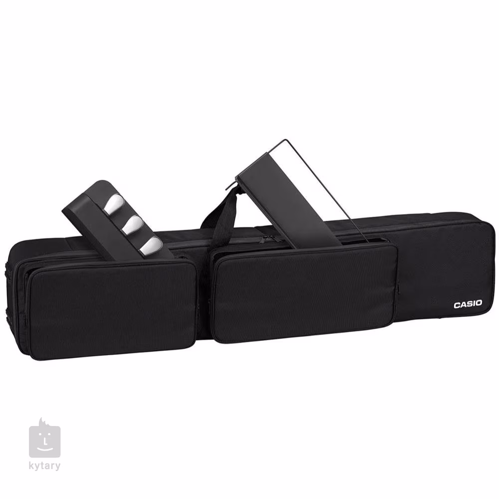 Kryt klávesnice Casio SC 800 vhodný pre Casio CDP-S100, CDP-S350, PX-S1000, PX-S1100, PX-S3000 a PX-S3100. Je vybavený hrubým, dvadsaťmilimetrovým polstrovaním a okrem dvoch rukovätí na vodorovné prenášanie má aj zadné popruhy. Na príslušenstvo sú tu dve praktické vrecká, do ktorých sa ľahko zmestí notový stojan, pedál a adaptér.