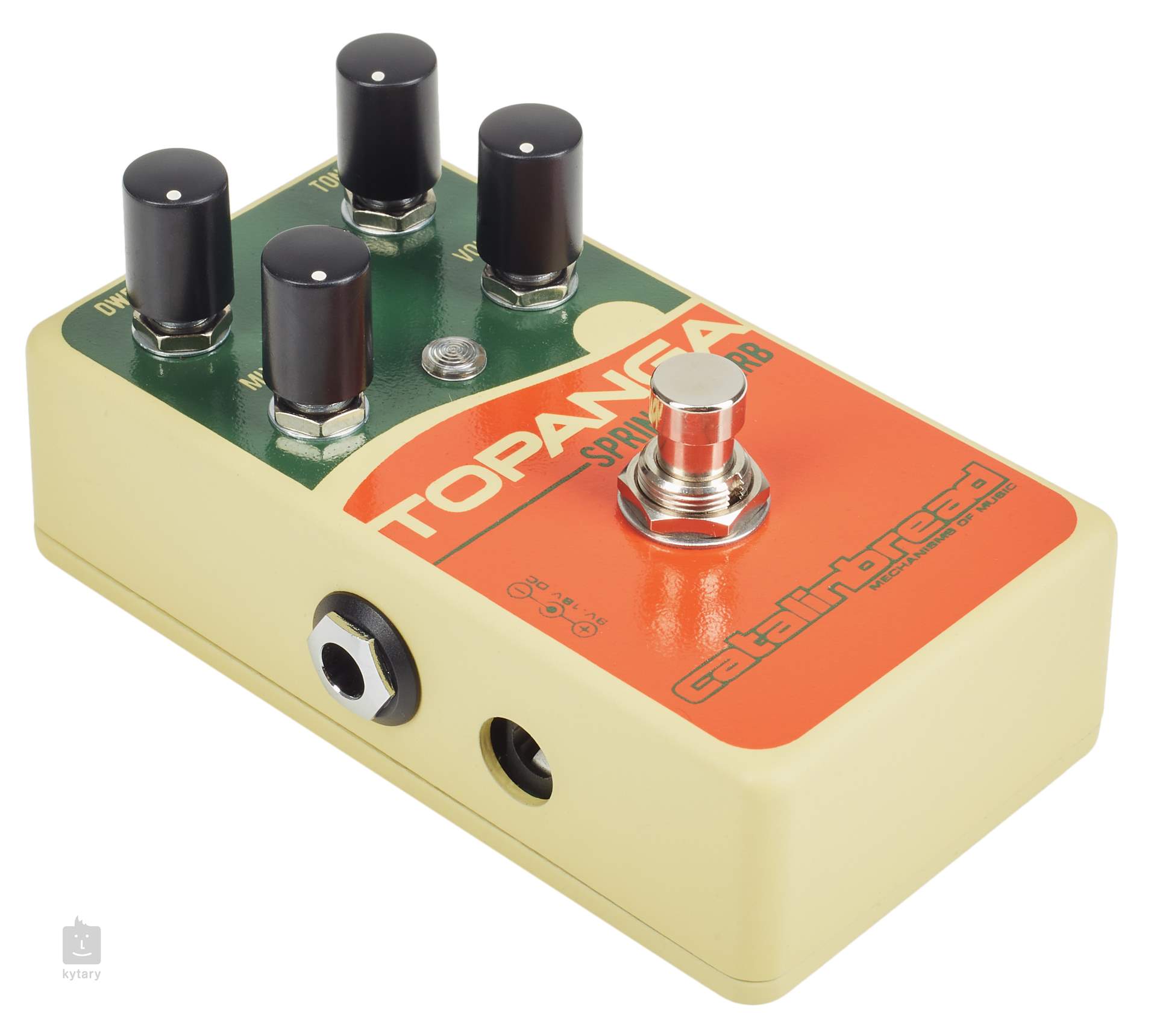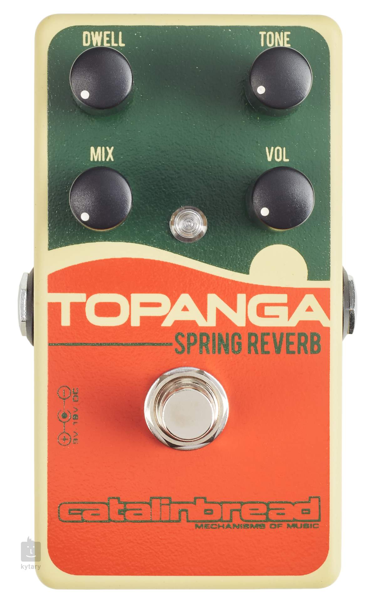 Catalinbread TOPANGA je pedálový efekt inšpirovaný legendárnym pružinovým reverbom Fender 6G15 (Fender Reverb Unit) známym zo surf rocku, spaghetti westernov a ďalších skvelých gitarových zvukov 60. rokov. Na rozdiel od vstavaných pružinových reverbov bol 6G15 pred aparátom, takže reverbový signál bol ešte viac rozladený. Zároveň to bol v podstate lampový predzosilňovač, takže ovplyvňoval aj zvuk idúci do gitary. Catalinbread TOPANGA teraz toto všetko ponúka, vrátane troch gombíkov (Dwell určuje, ako silno dopadá gitarový signál na reverbové pružiny) plus gombíka Volume na nastavenie požadovanej miery čistého boostu.