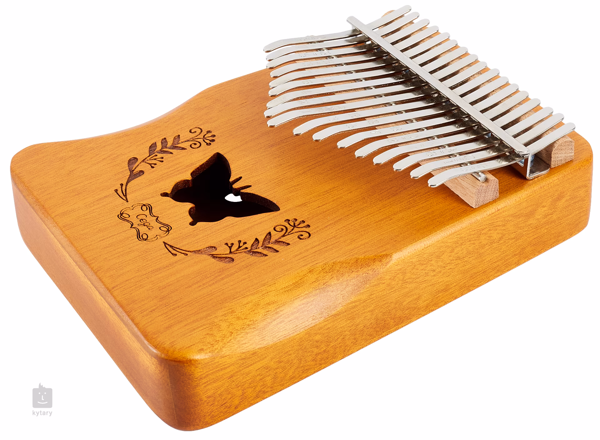 Kalimba je jedinečný melodický nástroj, ktorý dodá vašej produkcii alebo živému vystúpeniu jedinečný a nezameniteľný prvok. Možno ho použiť na sprievodnú alebo sólovú hru. Kalimby od spoločnosti Cega sú vyrobené z vysokokvalitných drevín, ktoré sa sušia len prirodzeným spôsobom, čo im dodáva skvelé zvukové vlastnosti a maximálnu stabilitu. Tento model je vyrobený z agátového dreva a má ozvučný otvor, ktorý dodáva zvuku nástroja pevnosť a hutnosť. Klávesy z uhlíkovej ocele potom dávajú nástroju jasný a hlasný, ale stále príjemne teplý zvuk. Klávesy sú tiež vybavené vygravírovanými tónmi, ktoré pomôžu zorientovať sa najmä novým hráčom.
