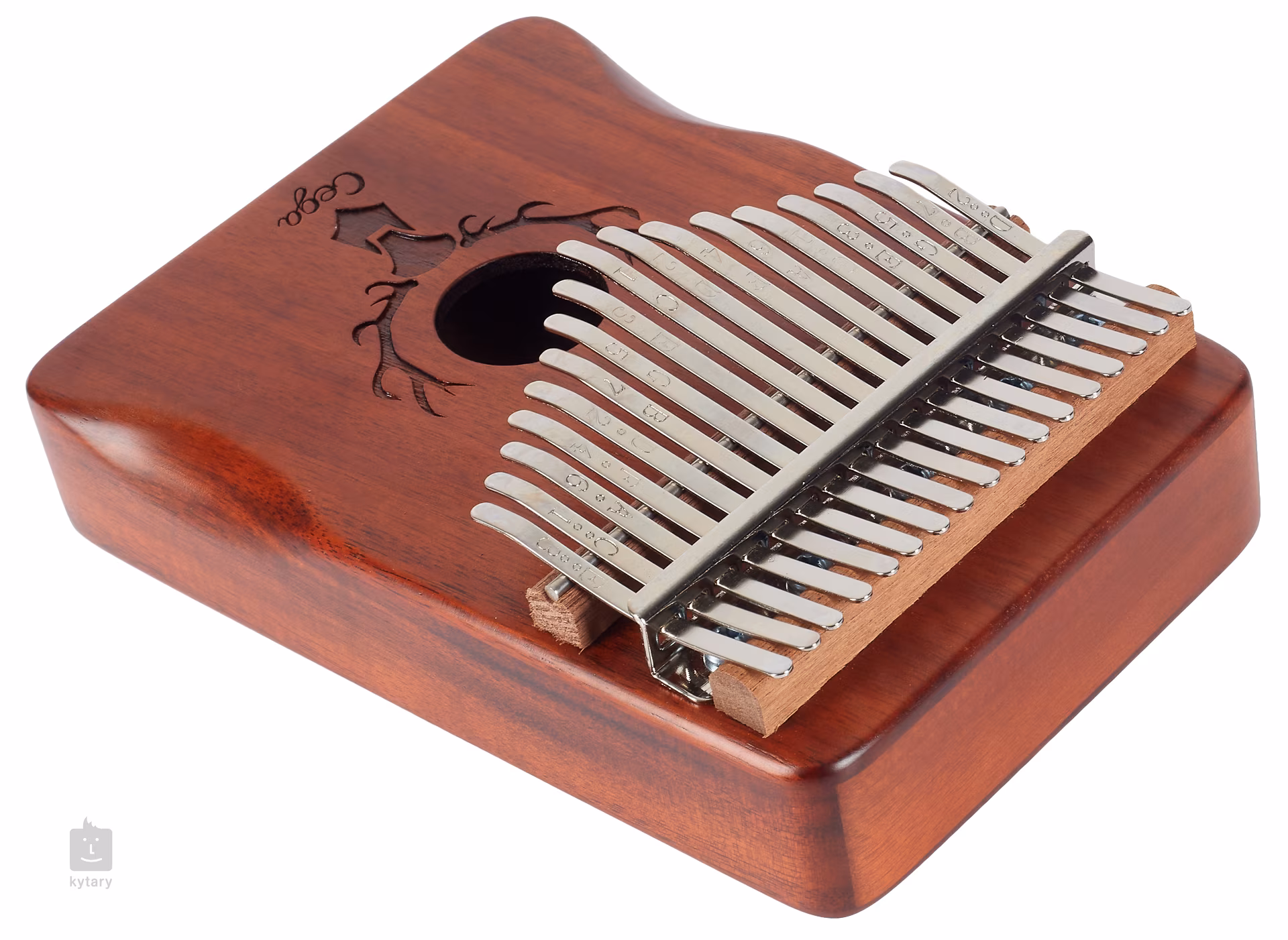Kalimba je jedinečný melodický nástroj, ktorý dodá vašej produkcii alebo živému vystúpeniu jedinečný a nezameniteľný prvok. Možno ho použiť na sprievodnú alebo sólovú hru. Kalimby od spoločnosti Cega sú vyrobené z vysokokvalitných drevín, ktoré sa sušia len prirodzeným spôsobom, čo im dodáva skvelé zvukové vlastnosti a maximálnu stabilitu. Tento model je vyrobený z osvedčeného mahagónového dreva a má rezonančný otvor, ktorý dodáva zvuku nástroja pevnosť a hutnosť. Klávesy z uhlíkovej ocele potom dávajú nástroju jasný a hlasný, ale stále príjemne teplý zvuk. Klávesy sú tiež vybavené vygravírovanými tónmi, ktoré pomôžu zorientovať sa najmä novým hráčom.