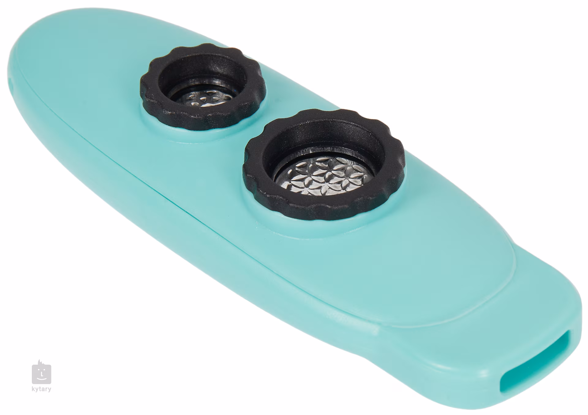 Plastové dvojdierové kazoo s dvoma otvormi/membránami. Táto konštrukcia umožňuje brnkať melódiu v nižšom aj vyššom ladení bez toho, aby ste museli meniť membránu kazoo. Otáčaním krytov môžete upraviť napätie membrány a zmeniť tak zvukovú odozvu kazoo.