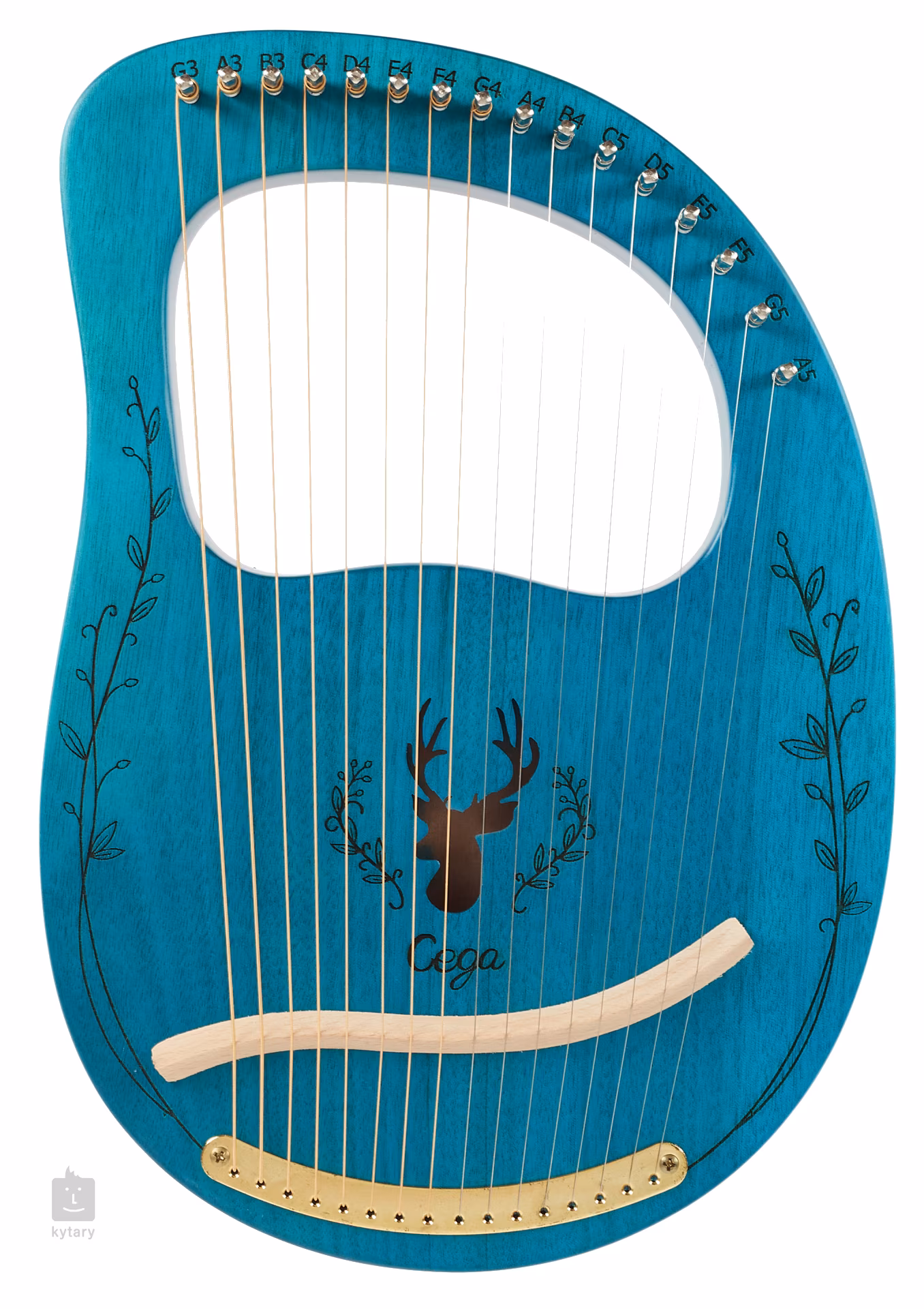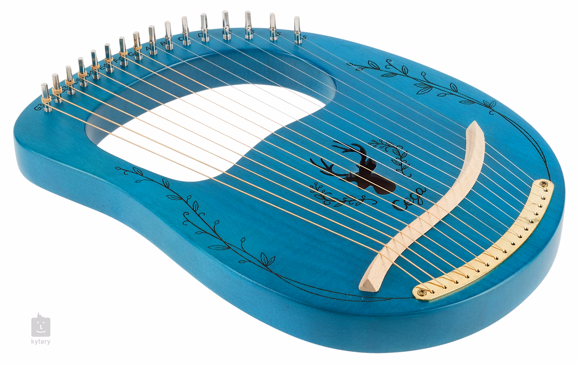 Lyra LH16 je v modrej farbe, má šestnásť strún a okolo ozvučného otvoru je zdobená rezbou v tvare jeleňa.