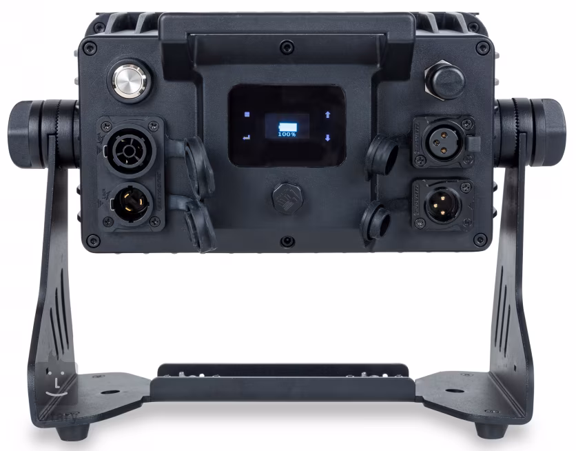 K ovládání můžete využít buďto standardní protokol DMX512, bezdrátové DMX pomocí CRMX nebo dálkové ovládání pomocí infračerveného ovladače. K dispozici je také režim Master/Slave, automatické programy a 37 přednastavených programů. Přístroj disponuje velmi tichým systémem chlazení, takže jej využijete i v situacích, kde je třeba naprosto nehlučný provoz. Profesionální lithium-iontová baterie vydrží na jedno nabití až 8 hodin plynulého provozu (dobíjení trvá 6 hodin). Součástí balení je frost filtr, IR ovladač, napájecí kabel, směrová dvířka, kterými můžete dále ovlivňovat směr a rozptyl paprsku a svorky k uchycení přístroje na pódiovou konstrukci.