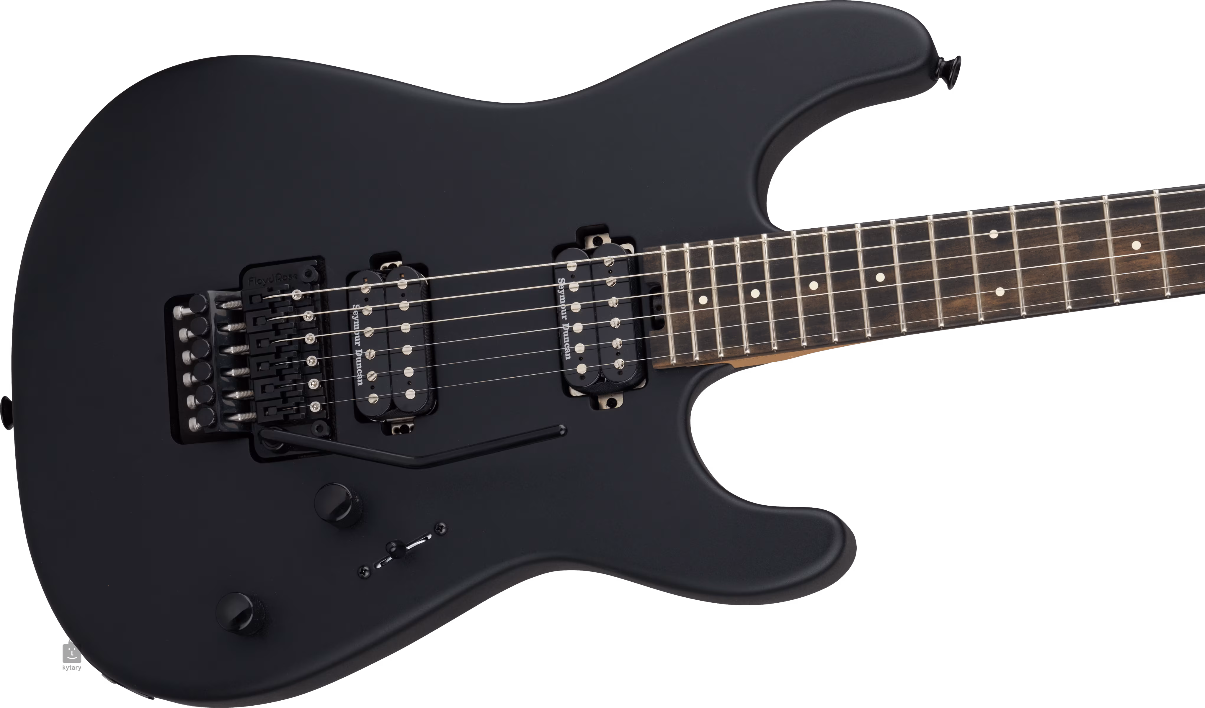 Elektrická gitara Charvel Pro-Mod Plus SD1 FR EB SCE má dizajn Strat/Super Strat zo začiatku 80. rokov, pomenovaný podľa miesta svojho vzniku - San Dimas v Kalifornii.