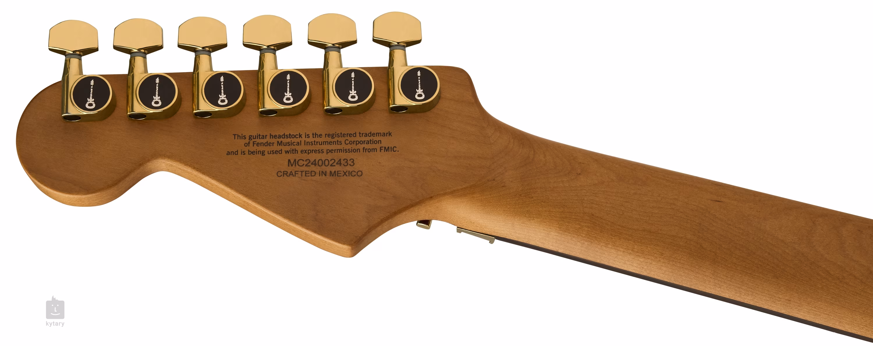 Struny sú osadené firemnými odlievanými mechanikami a tremolom Floyd Rose série 1500, ktorým môžete svoju hru obohatiť o pôsobivé zvukové efekty. Zámky na nultom pražci zaručujú, že gitara zostane naladená aj pri častom používaní tremolo páky. Štýlové spracovanie podčiarkuje zlatý hardvér a pickguard v špecifickom tvare gitár Charvel "So-Cal".