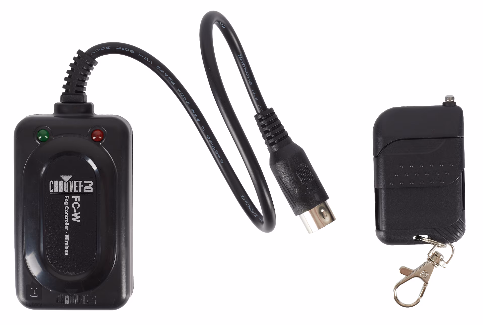 FC-W je bezdrôtový ovládač, vhodný pre väčšinu hmloviek Chauvet DJ. Ovládač je schopný ovládať až štyri hmlovacie zariadenia naraz, je však potrebné dokúpiť ďalšie prijímače. Zariadenie je napájané priamo od výrobcu a nevyžaduje žiadny ďalší zdroj energie. Na vysielači nájdete dvojicu LED indikátorov, ktoré vám poskytnú prehľad o tom, či sa ovládané zariadenie ešte zahrieva alebo je už pripravené na prevádzku. Diaľkový ovládač je vybavený praktickým krúžkom na kľúče a magnetickou zadnou časťou.