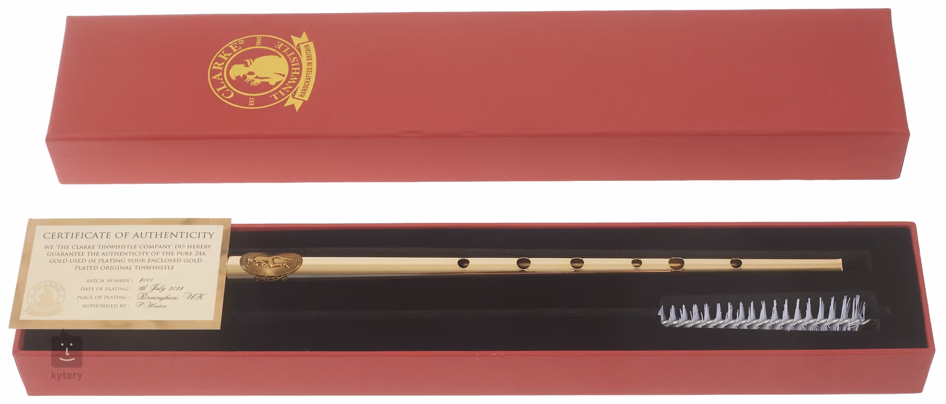 Flauty Clarke Original Tinwhistle sa vyrábajú v Anglicku a sú dostupné v ladení C a D. Pozlátené flauty Clarke s pozláteným povrchom boli vyrobené na oslavu korunovácie kráľa Karola III. British. Balenie okrem flauty obsahuje prezentačnú škatuľku, prémiové kožené puzdro, ciferník, čistiacu handričku z mikrovlákna a prstoklad.