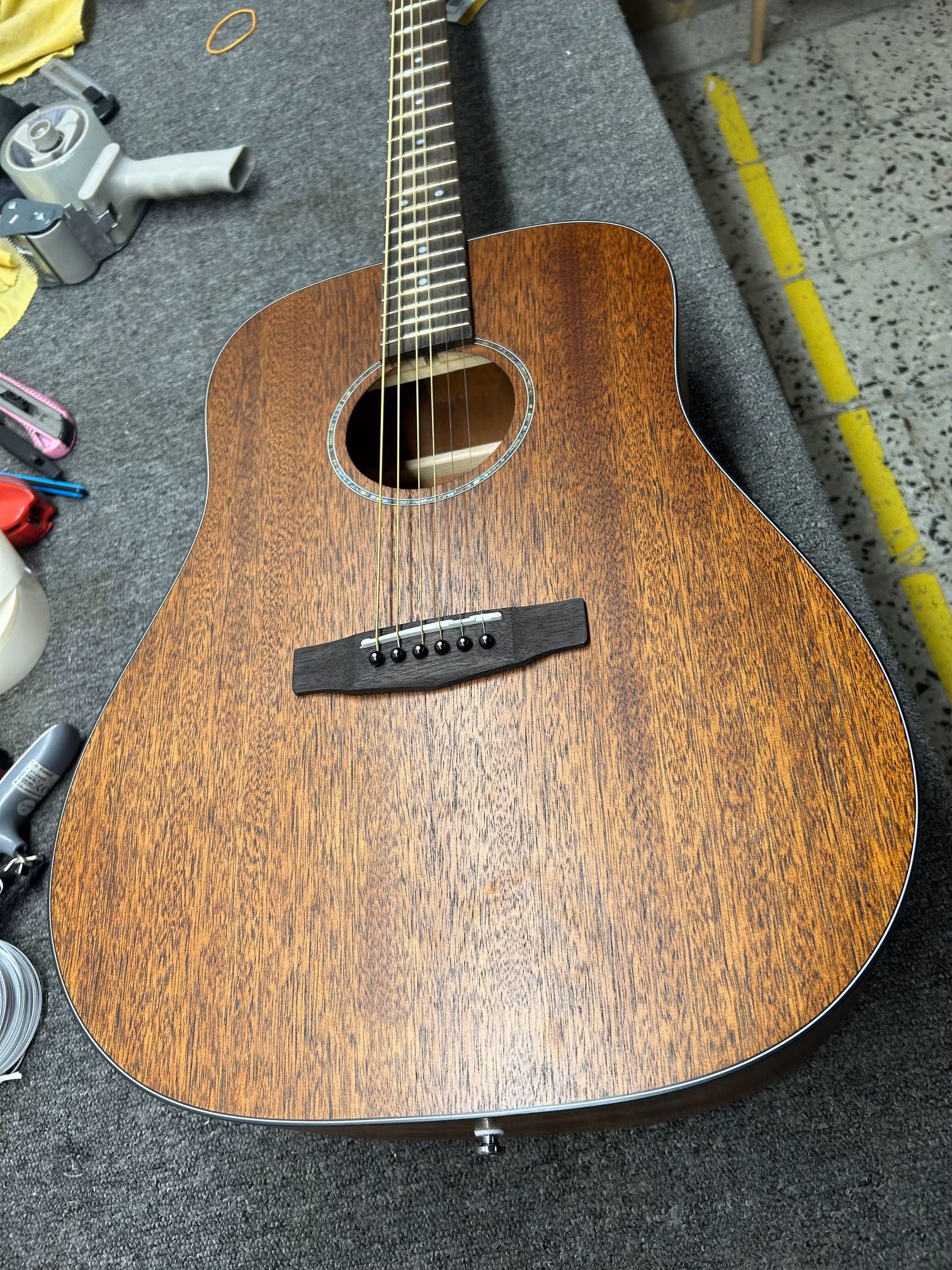Telo akustickej gitary Earth60M OP je vyrobené z mahagónu - predná strana je z masívneho mahagónu, zadná strana a luby z masívneho mahagónu. Telo má povrchovú úpravu s otvorenými pórmi. Mahagónový krk je prilepený k hmatníku z merbau s 20 pražcami a polohové bodky uľahčujú orientáciu.