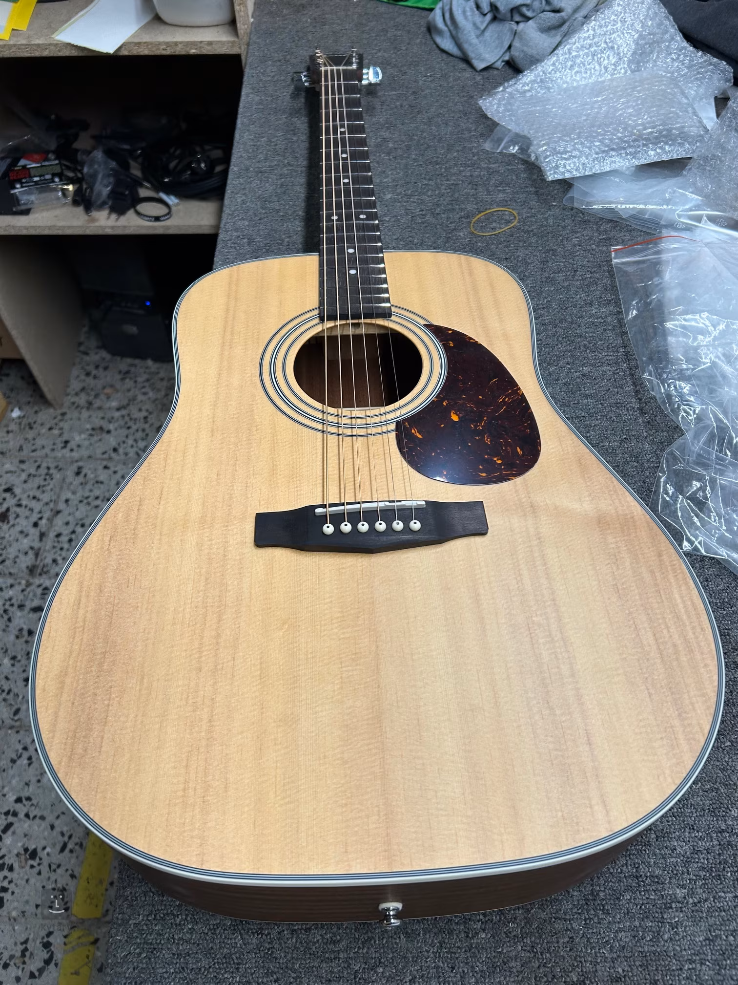 Uloženie strún v špeciálne tvarovanom ovangkolovom hmatníku a firemná liata mechanika zaručujú gitare dobrý sustain a stabilitu ladenia. Tradičné dizajnové prvky dopĺňa rozeta zložená z čiernych a bielych krúžkov, obvodové viazanie v imitácii slonoviny a pickguard v imitácii korytnačky, ktorý chráni lak nástroja pred poškriabaním.