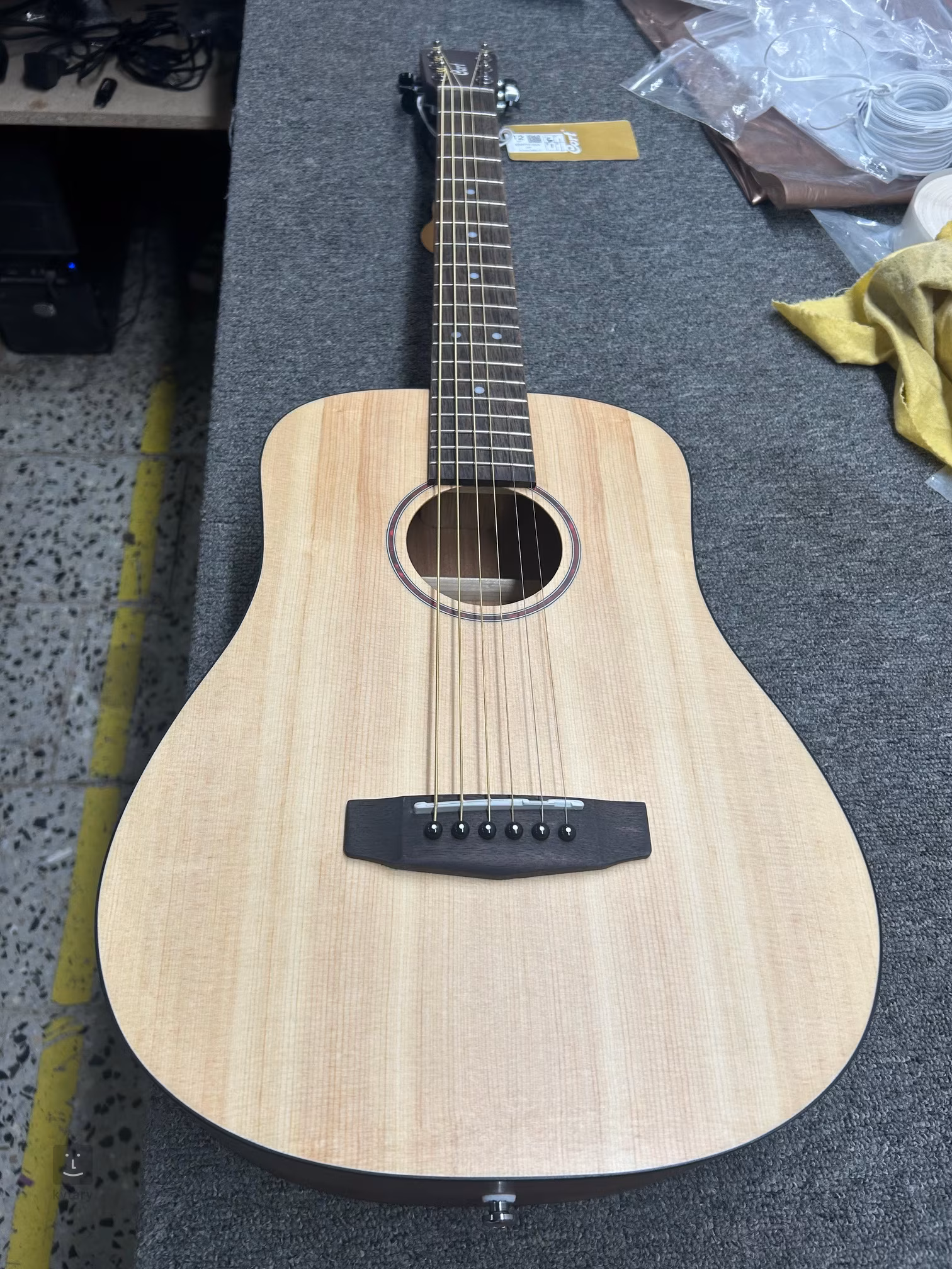 Predná doska gitary je vyrobená z masívneho smreka Sitka, zadná doska a luby z preglejky mahagónu. Táto osvedčená kombinácia drevín dodáva nástroju vyvážený zvuk s potrebnou dávkou tonálnej čistoty a hrejivosti. Mahagónový krk je prilepený k figovému hmatníku s devätnástimi pražcami a orientáciu na hmatníku uľahčujú polohové bodky. Jednoduchá rozeta s imitáciou perlete a čierne obvodové lemovanie dotvárajú uhladený dizajn nástroja.