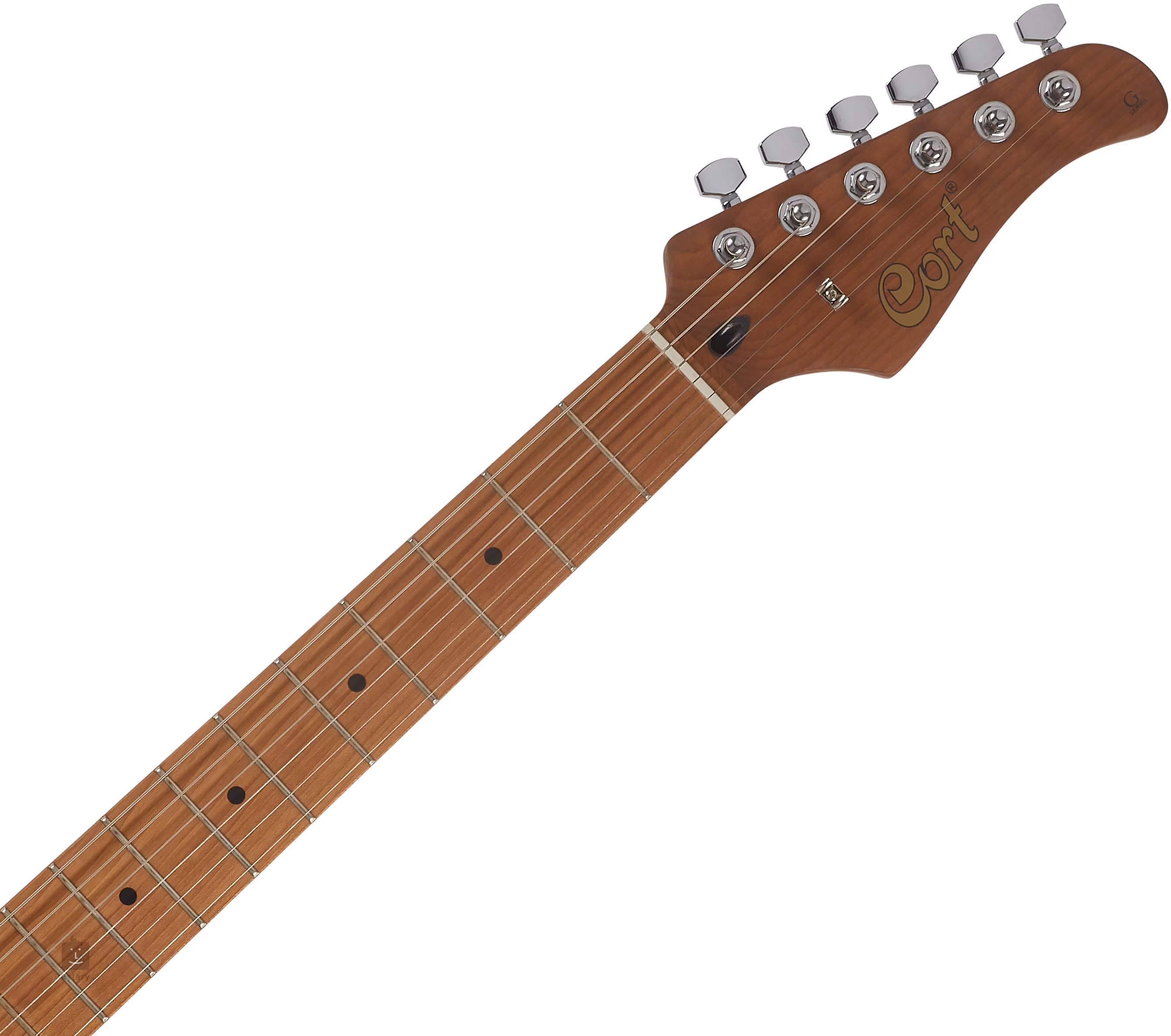 Kobylkový humbucker a dva single-coil snímače Cort Powersound poskytujú gitare širokú škálu tónov, t. j. teplý, plný a v prípade potreby agresívny zvuk humbuckera a čistý, artikulovaný tón single-coilov. Tón môžete nastaviť pomocou ovládačov hlasitosti a tónu a päťpolohového prepínača snímačov. Struny sú ukotvené v liatinových ladiacich mechanikách a vintage 6-bodovom tremole.