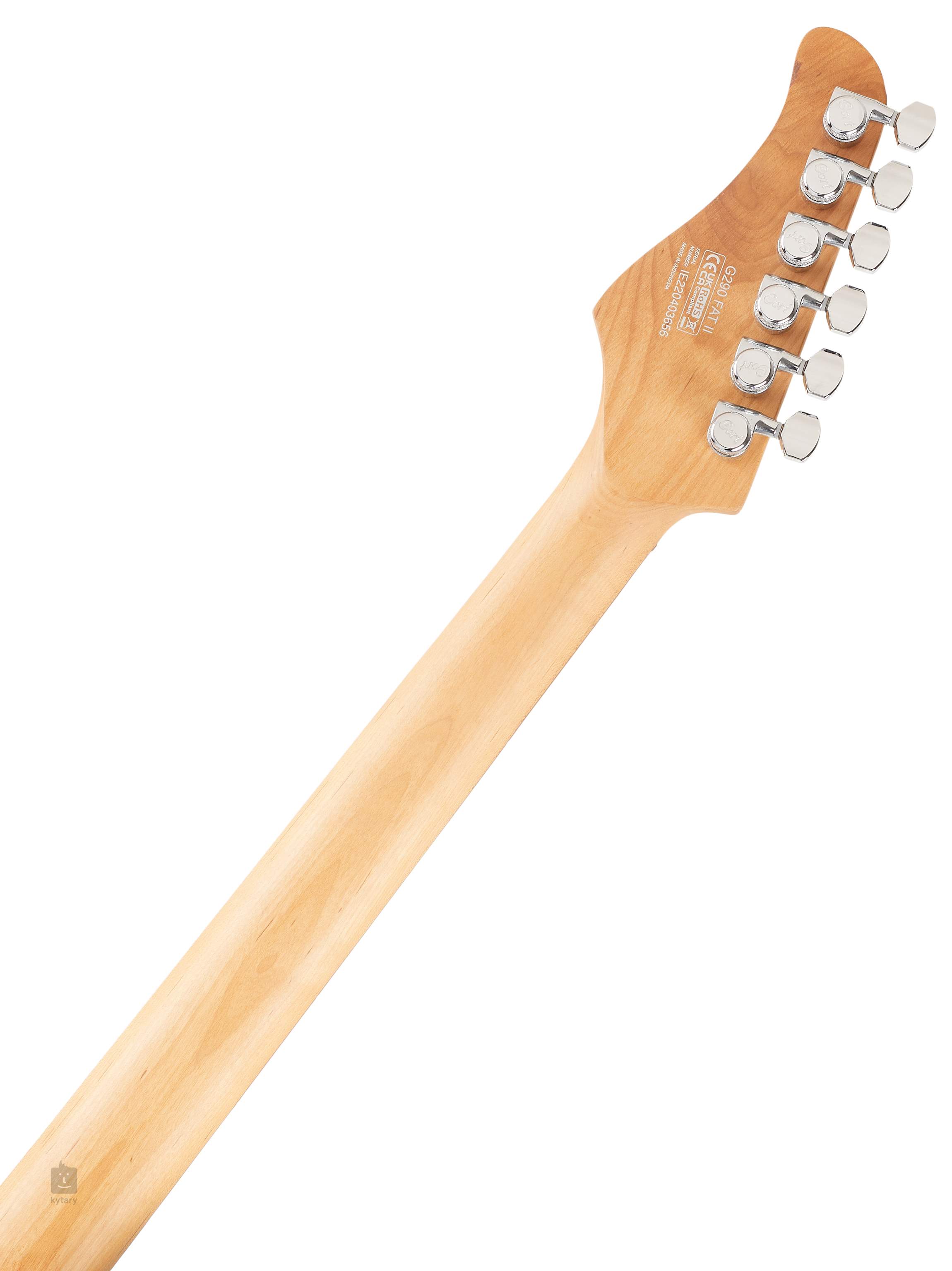 Olšové telo gitary zdobí efektná dyha z fládrovaného javora. Tepelná úprava krku a hmatníka dodáva drevu väčšiu stabilitu a zároveň zlatý "vintage" vzhľad starších drevín. Nielen rýchlych hráčov poteší pohodlný profil krku Ergo-V a kombinovaný rádius hmatníka, ktorý sa smerom k telu splošťuje - čo umožňuje pohodlnú hru akordových sprievodov a rýchly shred na vyšších výškach.