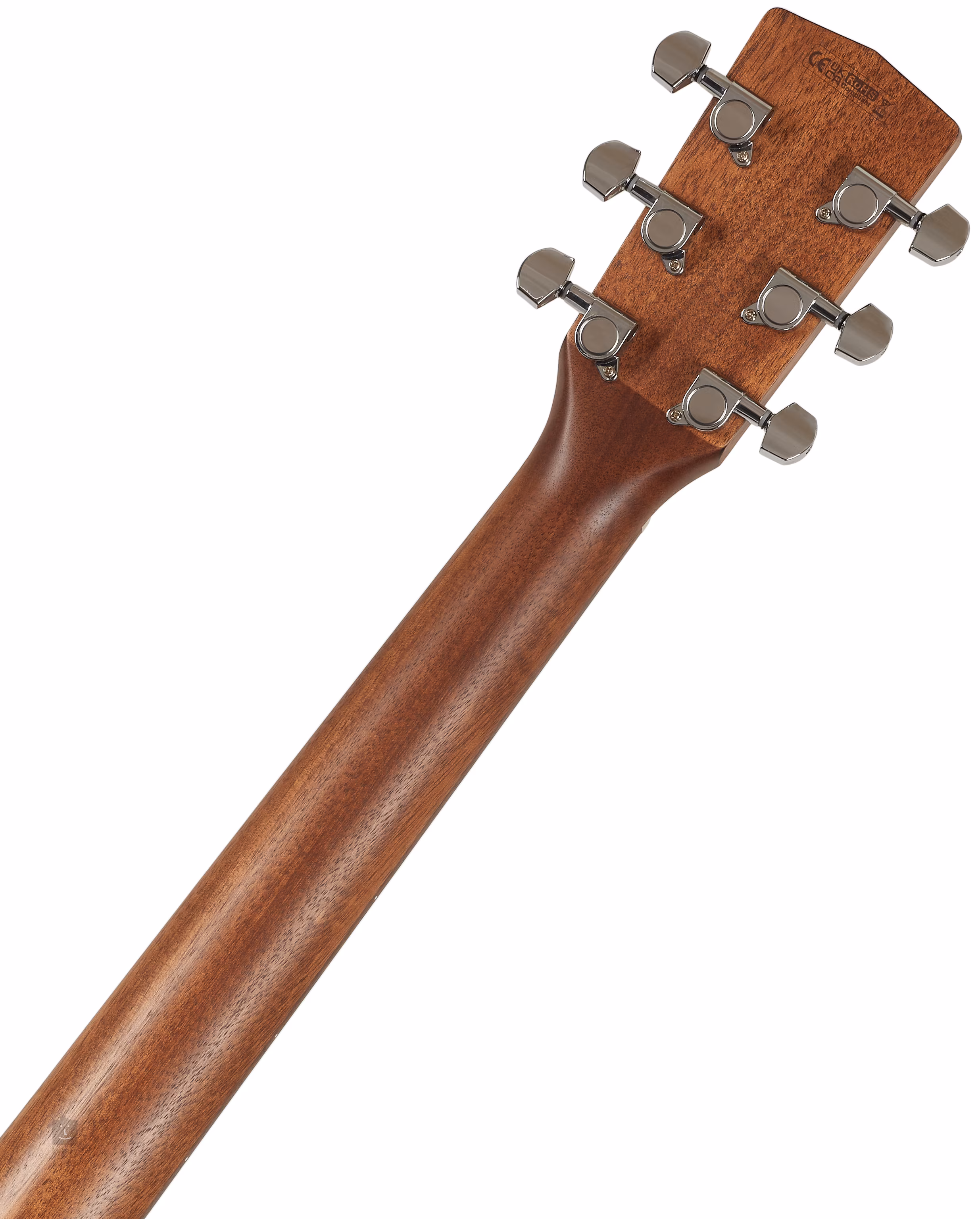 Predná doska elektroakustickej gitary Cort GA1E OP je vyrobená z masívneho smrekového dreva, zatiaľ čo zadná doska a luby sú z laminovaného mahagónu. Mahagónový krk je prilepený k ovangkolovému hmatníku s dvadsiatimi pražcami, orientáciu na hmatníku uľahčujú biele polohové bodky. Nižší výrez tela ponúka dobrú súhru aj vo vyšších polohách hmatníka.