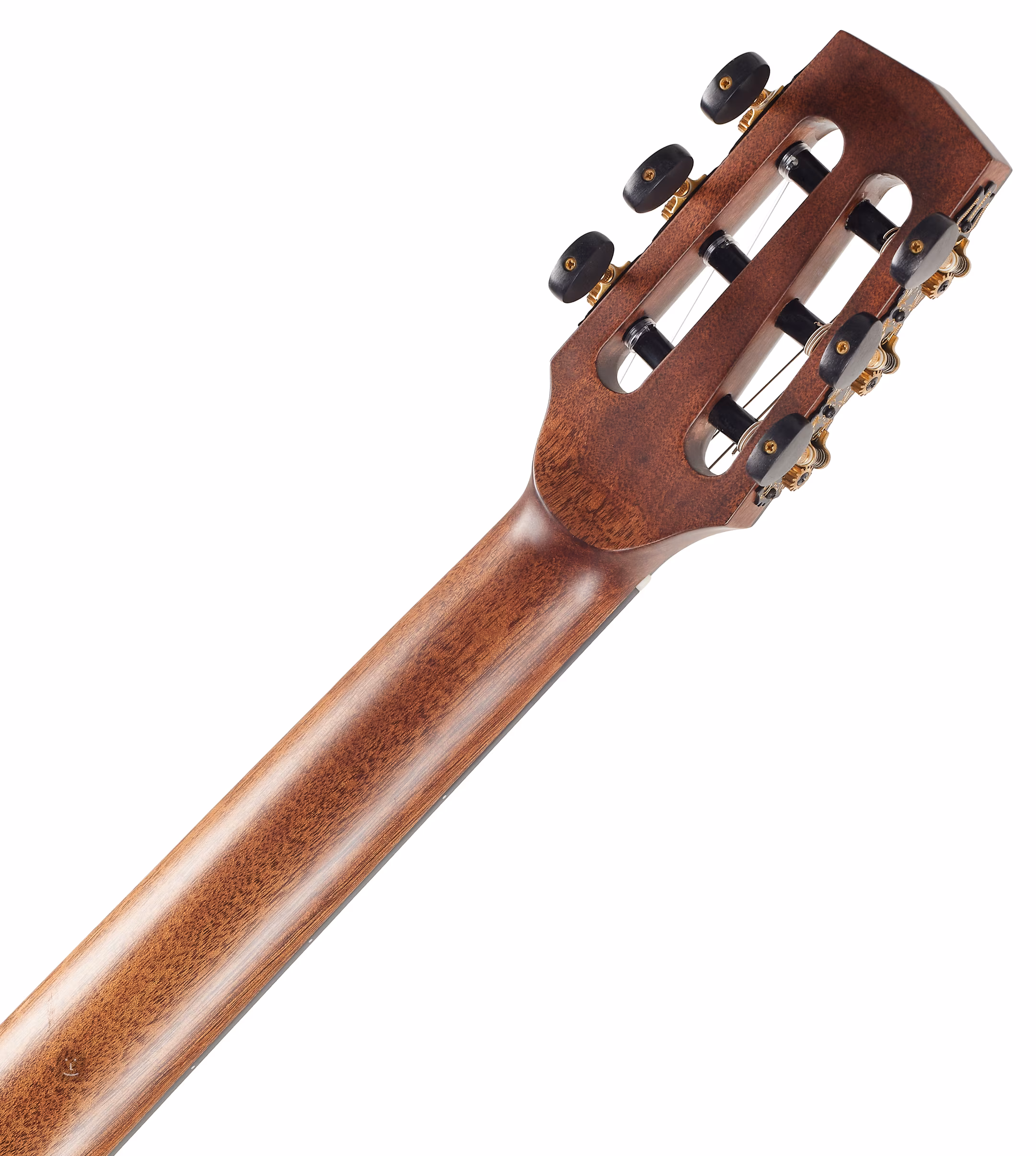 Ebenový hmatník je rozdelený dvadsiatimi pražcami so zaoblenými hranami a značkami polohy v podobe ozdobných perleťových intarzií. Stabilitu ladenia zaručuje uchytenie strún v mechanike Vintage Classics v zlatom prevedení a ebenová hlavička. Tradičné ozdobné a praktické prvky dopĺňa perleťová rozeta (Abalone) a biela lišta s trojvrstvovou záložkou.