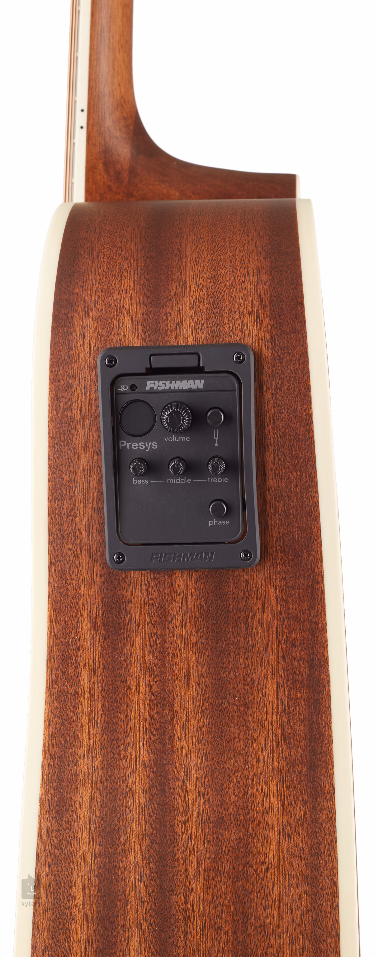 Krk možno nastaviť pomocou jeho výstuhy, polohy na hmatníku sú vyznačené bielymi bodkami, okolo ozvučného otvoru je drevená kruhová rozeta a telo má lemovky. Finiš v prevedení Natural Satin.