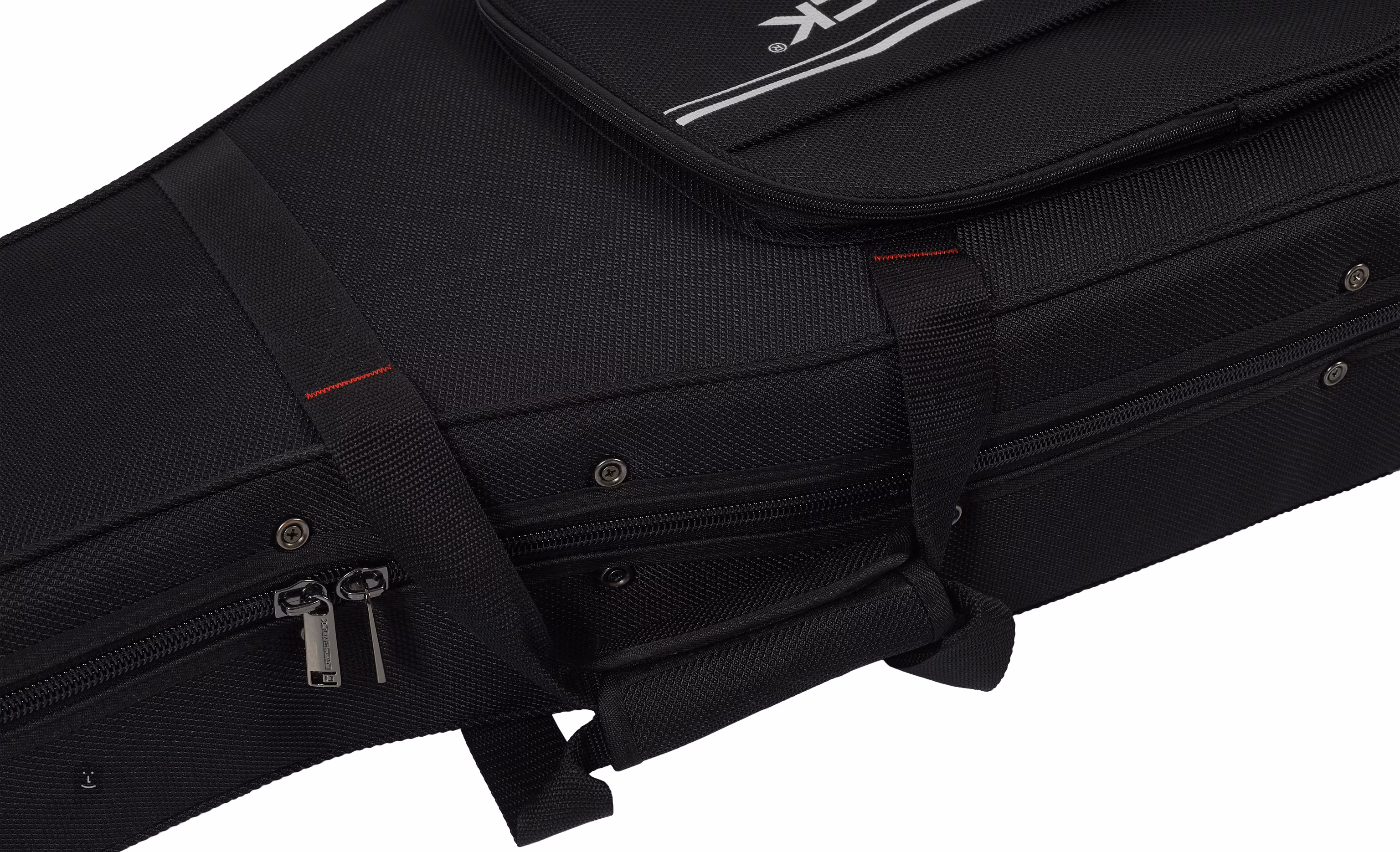 Puzdro je vybavené veľkým predným vreckom, do ktorého sa zmestia gitarové pedále, káble alebo notové knihy. Menšie vrecko slúži na uloženie drobného príslušenstva, ako sú trsátka, ladičky alebo struny. Na zadnej strane puzdra sa nachádzajú jednoduché chrbtové popruhy na pohodlné prenášanie. K dispozícii je aj pohodlné bočné držadlo.