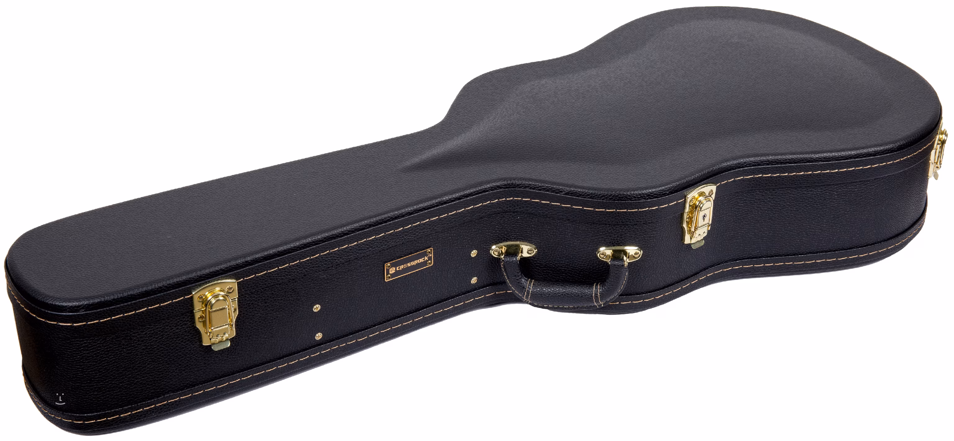 Vnútro puzdra je vybavené mäkkou plyšovou podšívkou a bohatým polstrovaním, ktoré vytvára dokonale bezpečné prostredie chrániace gitaru pred nárazmi a poškriabaním. Veľký vnútorný priestor slúži na uloženie príslušenstva, do ktorého bezpečne uložíte ladičku, struny, kapodastr a ďalšie potrebné veci. Rukoväť potiahnutá mäkkou kožou sa ľahko prenáša a príjemne sa drží v ruke. Luxusný dizajn puzdra podčiarkuje elegantný zlatý hardvér, vďaka čomu je nielen praktickým, ale aj estetickým doplnkom na bezpečnú prepravu gitary.