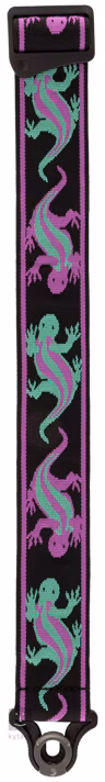 Tento remienok od spoločnosti D'addario poskytuje ideálnu kombináciu pohodlia, bezpečného zapínania a štýlového dizajnu. Vďaka špeciálnej technológii Auto Lock bude váš nástroj pevne držať bez potreby akýchkoľvek úprav, montáže zámkov alebo použitia spevňujúcich gumičiek. Popruh je vyrobený z kvalitného a pevného nylonu, zdobí ho motív s farebnými jašteričkami a umožňuje nastavenie dĺžky od 89 do 151 cm. Vhodná voľba pre gitaru aj basgitaru.