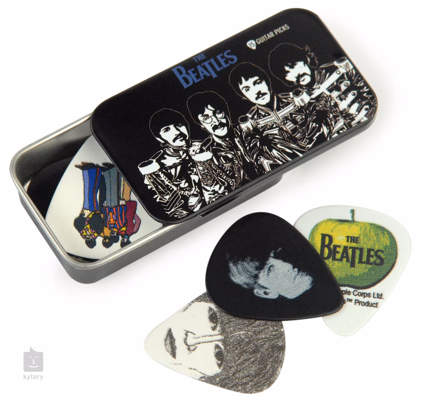 Sada pätnástich trsátok v plechovej škatuľke s motívmi skupiny The Beatles. Tvrdosť trsátok je stredná.