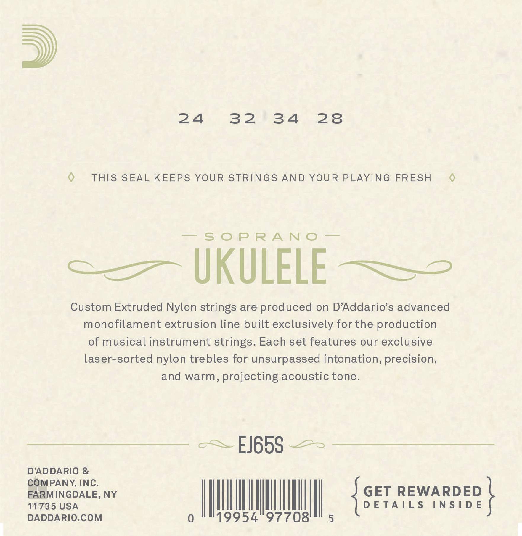 Struny D'Addario zo série Clear Nylon sú vyrobené z extrudovaného nylonu Pro-Arté, ktorý poskytuje teplý tón s jasnou projekciou a dokonalou intonáciou. Ponúka tiež dlhú životnosť. Táto sada je určená pre sopránové ukulele a je vhodná najmä pre tradičné ladenie ADF#B.