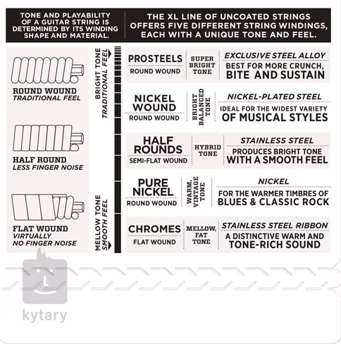 Struny D'Addario XL pre elektrickú gitaru sú už dlhodobo bestsellerom vo svete gitarových strún a je nepravdepodobné, že by niekedy vyšli z módy. Sú osvedčeným zlatým štandardom, ktorý je populárny už od roku 1974, takže si môžete byť istí, že vás nesklamú. Základom je šesťhranné oceľové jadro, ktoré zaisťuje perfektnú intonáciu, dlhú životnosť a konzistentný pocit pri hraní. Ovinuté struny sú potiahnuté poniklovaným oceľovým drôtom, ktorý im dodáva frekvenčne vyvážený tón vhodný pre väčšinu hudobných štýlov. Vysoká kvalita, univerzálnosť a odolnosť – to sú struny D'addario XL.