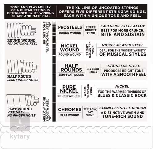 Struny pre elektrické basgitary značky D’Addario zo série XL Nickel Wound sú obľúbené vďaka svojmu vyváženému tónu a zvukovej univerzálnosti, vďaka čomu ich môžete využiť v akomkoľvek hudobnom štýle. Práve preto ide v rámci portfólia značky D’Addario o absolútny bestseller. Struny sú vyrobené zo šesťhranného oceľového jadra s vysokým obsahom uhlíka a sú obalené poniklovanou oceľou. Ich výroba prebieha v Spojených štátoch amerických.