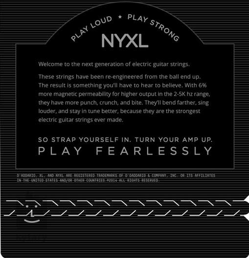 Prémiové struny D'addario NYXL pre elektrickú gitaru sú navrhnuté tak, aby prekračovali hranice. Zároveň sú vďaka silným stredným frekvenciám veľmi výrazné, presné a čisté. Poskytujú tiež výnimočne presnú stabilitu ladenia. Ich šesťhranné jadro je vyrobené zo špeciálnej zliatiny NY Steel, ktorá je o 40 % odolnejšia ako bežná oceľ, takže sa nemusíte obávať častého praskania. Niklované oceľové vinutie je navinuté pomocou špeciálnej technológie Fusion Twist, vďaka ktorej je ladenie o 131 % stabilnejšie ako pri bežných strunách. Stručne povedané, ide o struny prémiovej kvality, ktoré uspokoja aj tých najnáročnejších profesionálov. Toto balenie obsahuje tri sady strún.