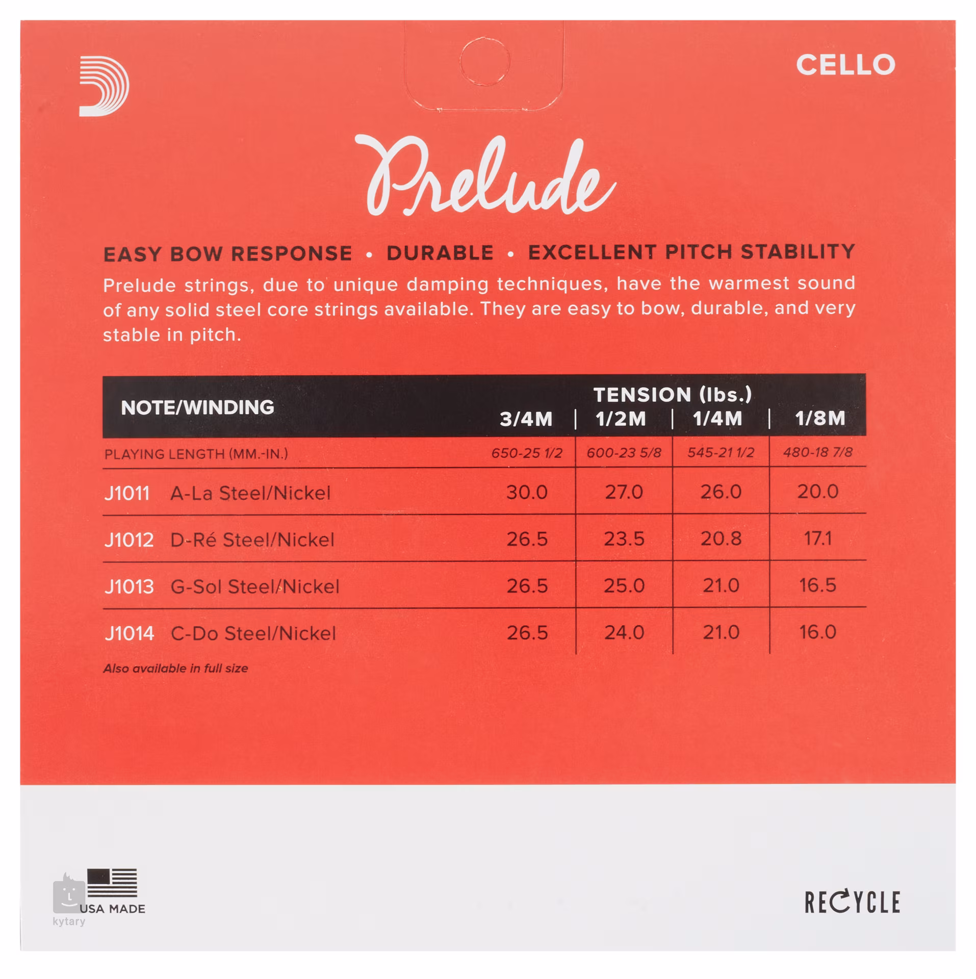 Violončelové struny série Prelude majú oceľové jadro a sú veľmi odolné voči zmenám teploty a vlhkosti. Výborne reagujú na sláčik a na túto cenovú kategóriu produkujú výnimočne teplý tón. Táto sada strún je ideálna pre začínajúcich hráčov a hudobné školy.
