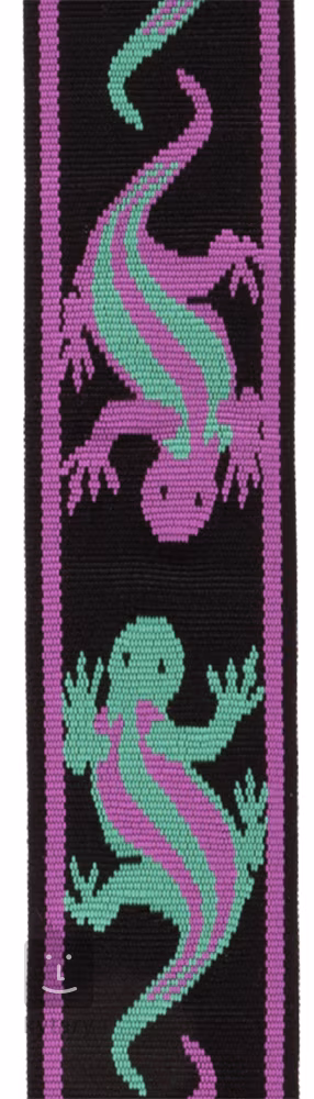 Tento remienok od spoločnosti D'addario poskytuje ideálnu kombináciu pohodlia, bezpečného zapínania a štýlového dizajnu. Popruh je vyrobený z kvalitného a pevného nylonu, zdobí ho elegantný motív s farebnými jaštericami a umožňuje nastavenie dĺžky od 89 do 151 cm. Konce sú vyrobené z pevnej a odolnej kože, ktorá pevne drží na kotúčoch a nešmýka sa. Vhodná voľba pre gitaru aj basgitaru.