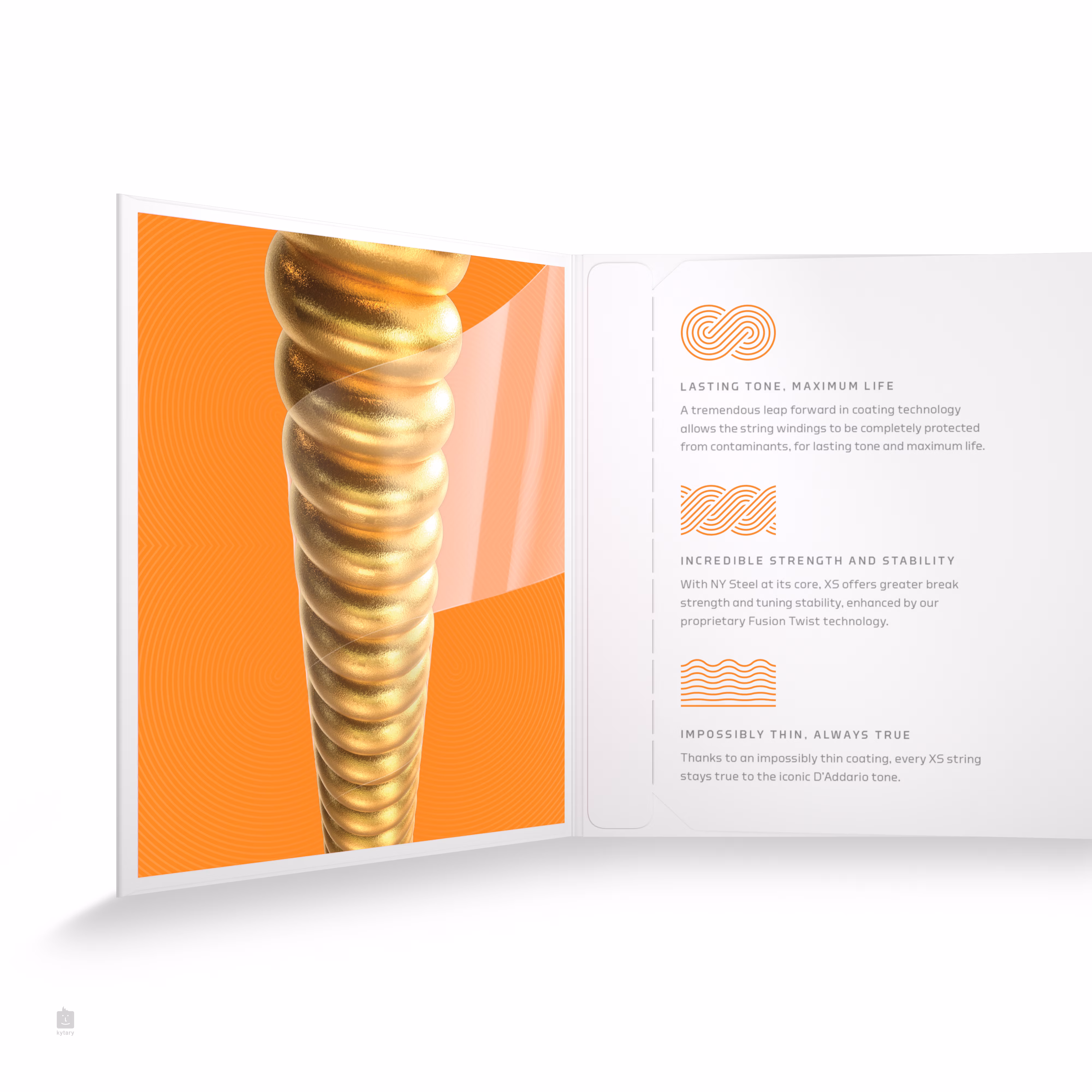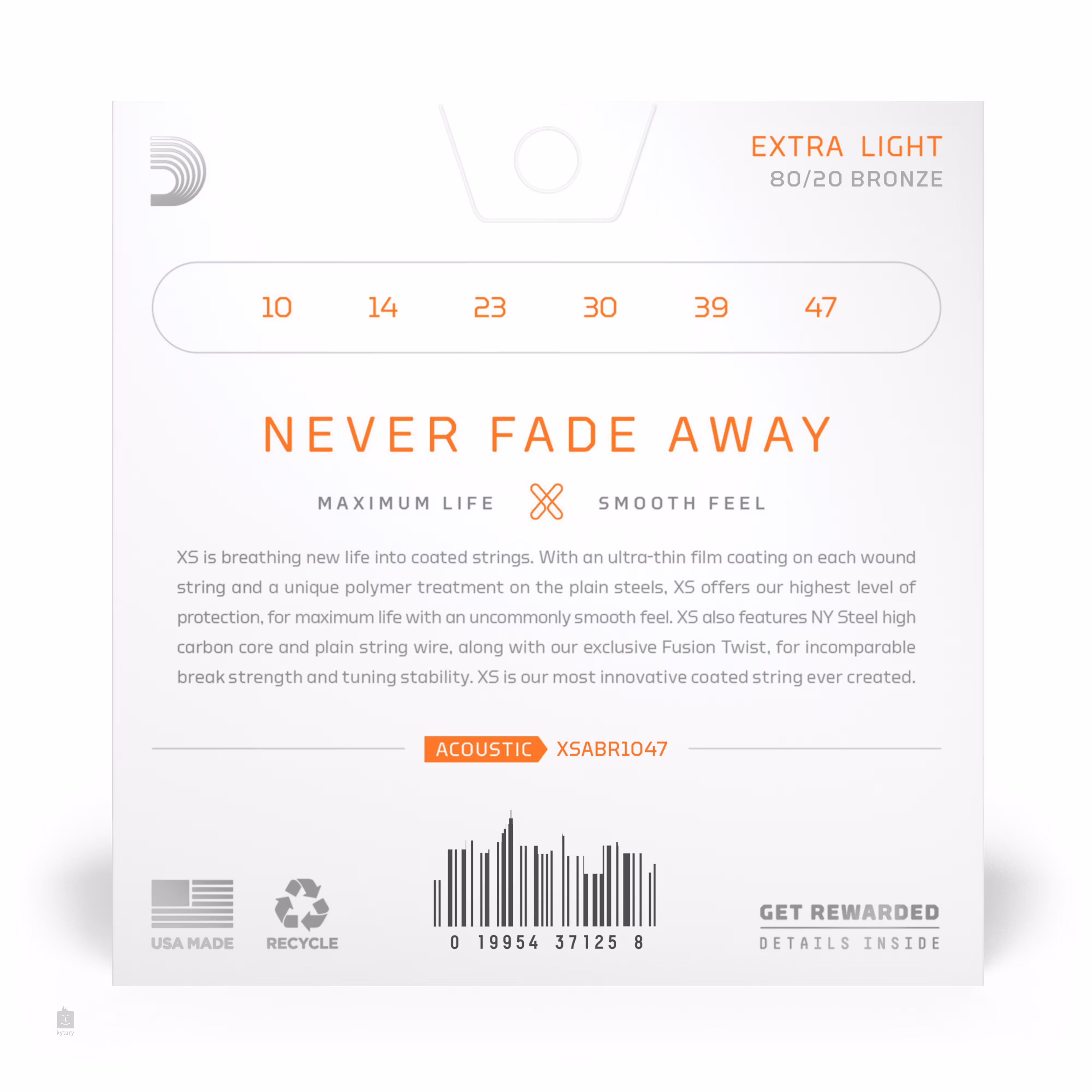 Špičkové struny XS od spoločnosti D'Addario predstavujú technologický prielom v oblasti potiahnutých strún a patria medzi najlepšie, ktoré môžete nájsť v katalógu tejto svetoznámej spoločnosti. Tieto struny kombinujú to najlepšie zo série XT, ale posúvajú latku ešte vyššie. Neuveriteľne tenký povlak im dodáva bezkonkurenčnú odolnosť a príjemne hladký povrch, bez toho, aby to malo negatívny vplyv na vynikajúce zvukové vlastnosti, pre ktoré sú struny D'Addario známe. Vďaka šesťhrannému oceľovému jadru s vysokým obsahom uhlíka a bronzovej zliatine (80/20) ponúkajú jasný a prenikavý zvuk, v ktorom dominujú vysoké frekvencie. Zároveň sa môžu pochváliť vynikajúcou stabilitou ladenia a vysokou odolnosťou. Stručne povedané, ide o špičkové struny, ktoré vám vydržia veľmi dlho.