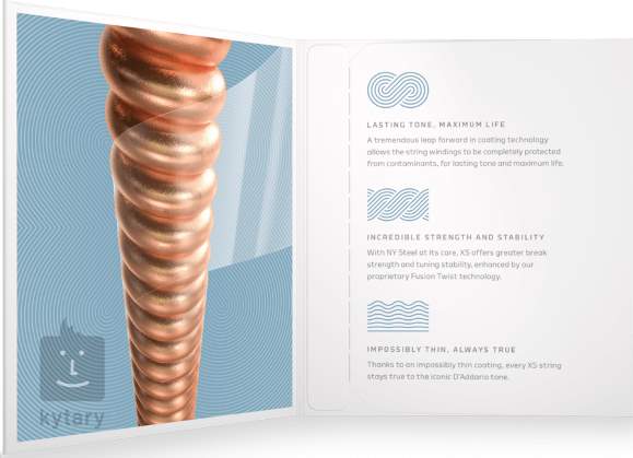 Špičkové struny XS od spoločnosti D'Addario predstavujú technologický prielom v oblasti strún s poťahom a patria k špičke toho, čo môžete nájsť v katalógu tejto svetoznámej spoločnosti. Tieto struny v sebe spájajú to najlepšie zo série XT, ale posúvajú latku o krok vyššie. Neuveriteľne tenký poťah im dodáva bezkonkurenčnú odolnosť a príjemne hladký povrch, pričom nijako neznižuje skvelé zvukové vlastnosti, ktorými sú struny D'Addario preslávené. Vďaka šesťhrannému oceľovému jadru s vysokým obsahom uhlíka a fosforovo-bronzovému vinutiu ponúkajú teplý a silný zvuk s vyváženým pomerom všetkých frekvencií, dlhým sustainom a skvelou dynamikou. Môže sa tiež pochváliť vynikajúcou stabilitou ladenia a vysokou odolnosťou. Stručne povedané, ide o struny najvyššej kvality, ktoré vám vydržia veľmi dlho.