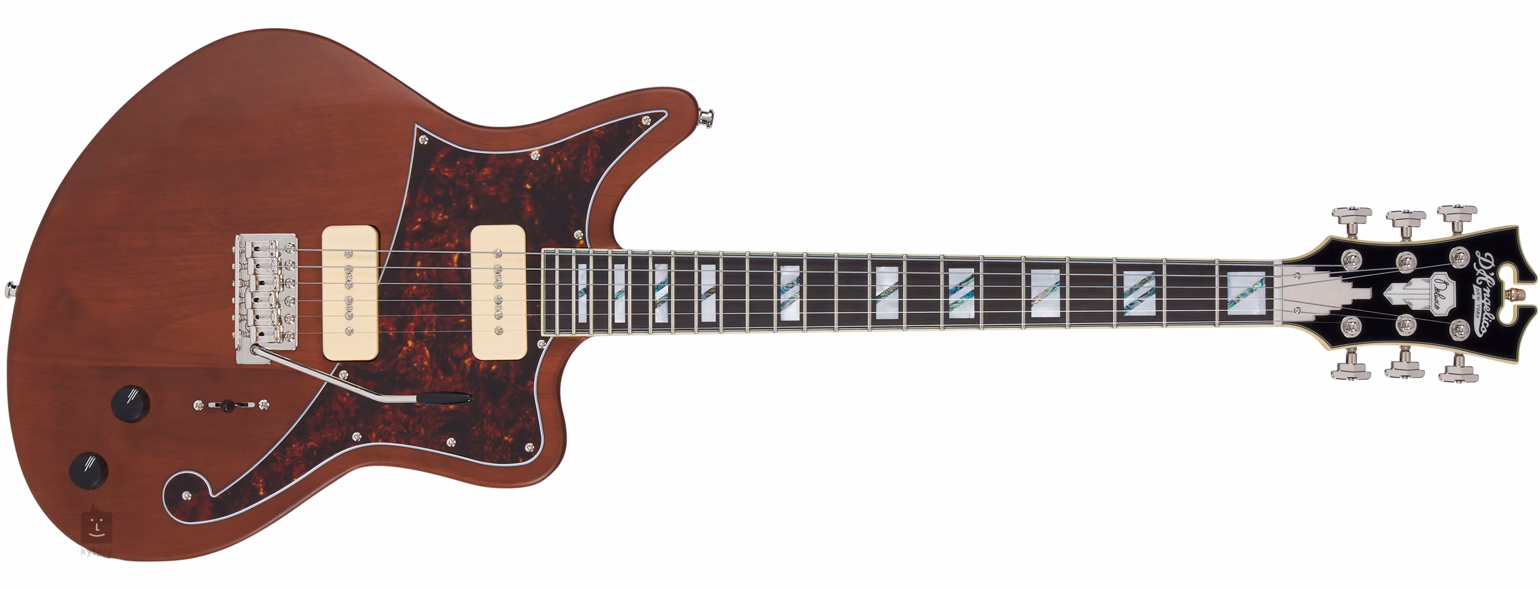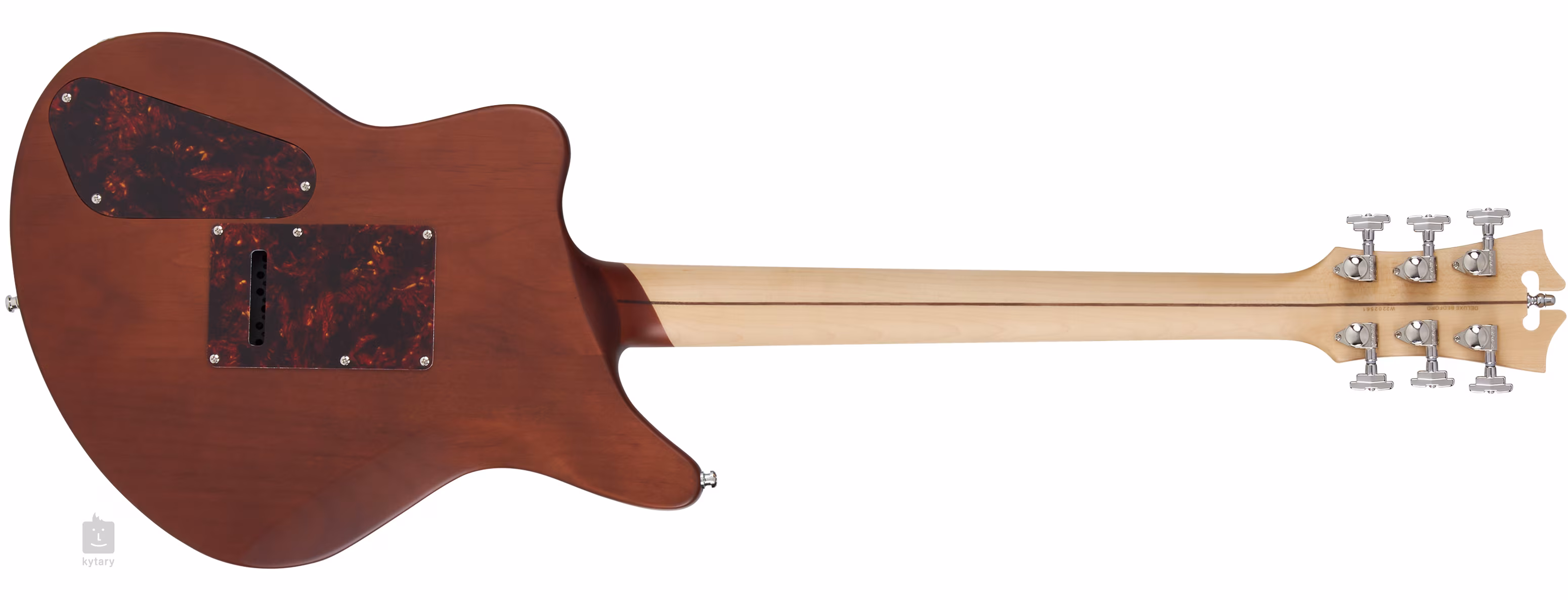 Struny sú uchytené cez nultý pražec Graphtech TusQ v kobylke Grover 509 Super Rotomatic Locking a 6-bodové tremolo Wilkinson. Jemné remeselné spracovanie nástroja podčiarkuje Art Deco hlavička zdobená perleťovým firemným logom a intarziou, hmatník a lemovanie hlavičky, päťvrstvová kobylka s F-otvorom s dizajnom napodobňujúcim výrez lubových nástrojov a niklový hardvér.