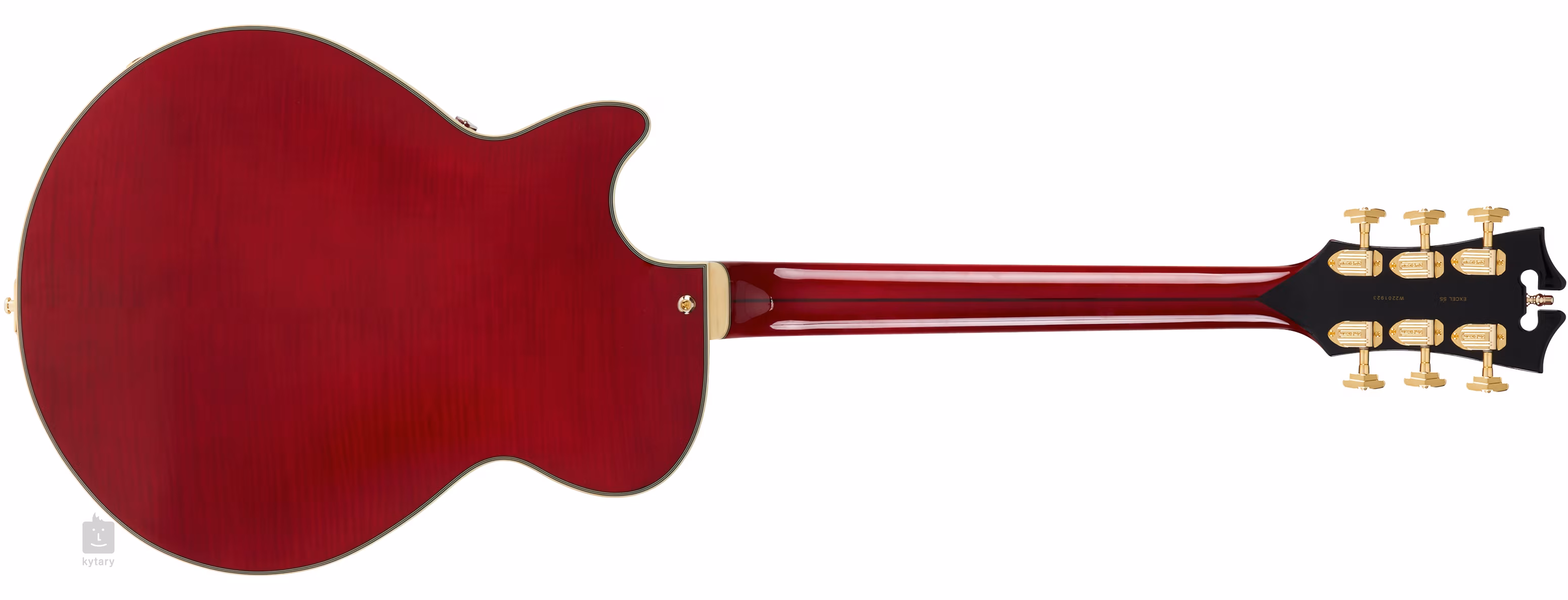 D'Angelico Excel SS Trans Cherry je semi-hollowbody gitara v prevedení single-cut. Jej pätnásť palcov široké telo je zložené z laminovanej smrekovej prednej dosky a laminovanej fládrovanej javorovej zadnej dosky a lubov. Stredový blok spevňuje rezonančnú dosku a pôsobí proti nežiadúcemu "viazaciemu" efektu mechov.