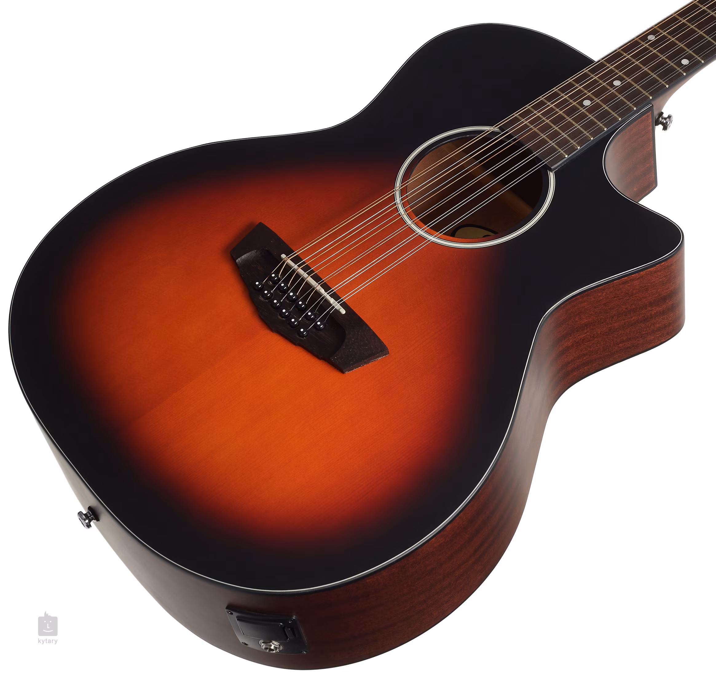 D'Angelico Fulton LS Grand Auditorium 12-String CE Satin Vintage Sunburst je cenovo dostupná 12-strunová elektroakustická gitara v obľúbenom tvare Grand Auditorium.