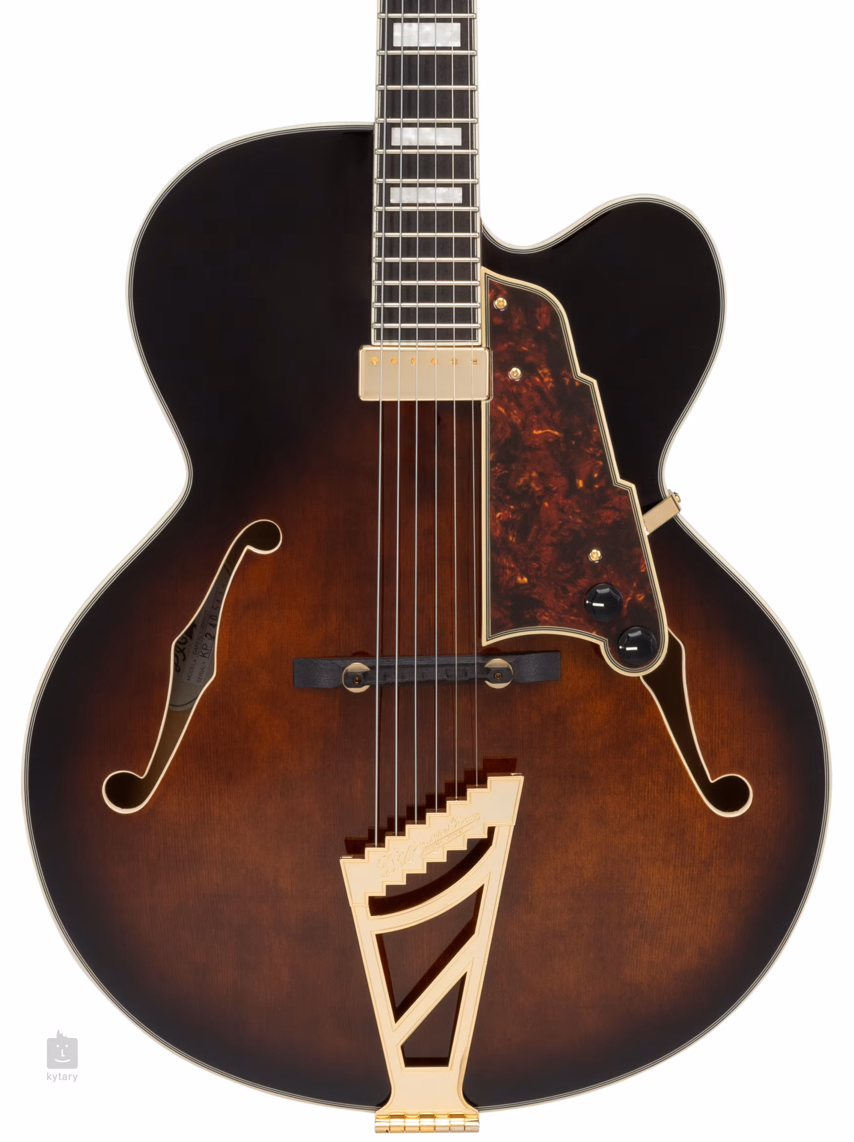 D'Angelico Premier EXL-1 Brown Burst je mosadzná gitara inšpirovaná pôvodným dizajnom Johna D'Angelica s jedným výrezom. Sedemnásť palcov široké telo ponúka teplý prirodzený akustický zvuk vhodný na hranie rytmických sprievodov a sól. Zadná doska a luby z plamenného javora sú zvýraznené lesklým lakovaním. Javorový krk s profilom "C" je prilepený k ovangkolovému hmatníku s dvadsiatimi dvoma Medium Vintage pražcami. Orientáciu na hmatníku uľahčujú polohové bloky z imitácie perlete.