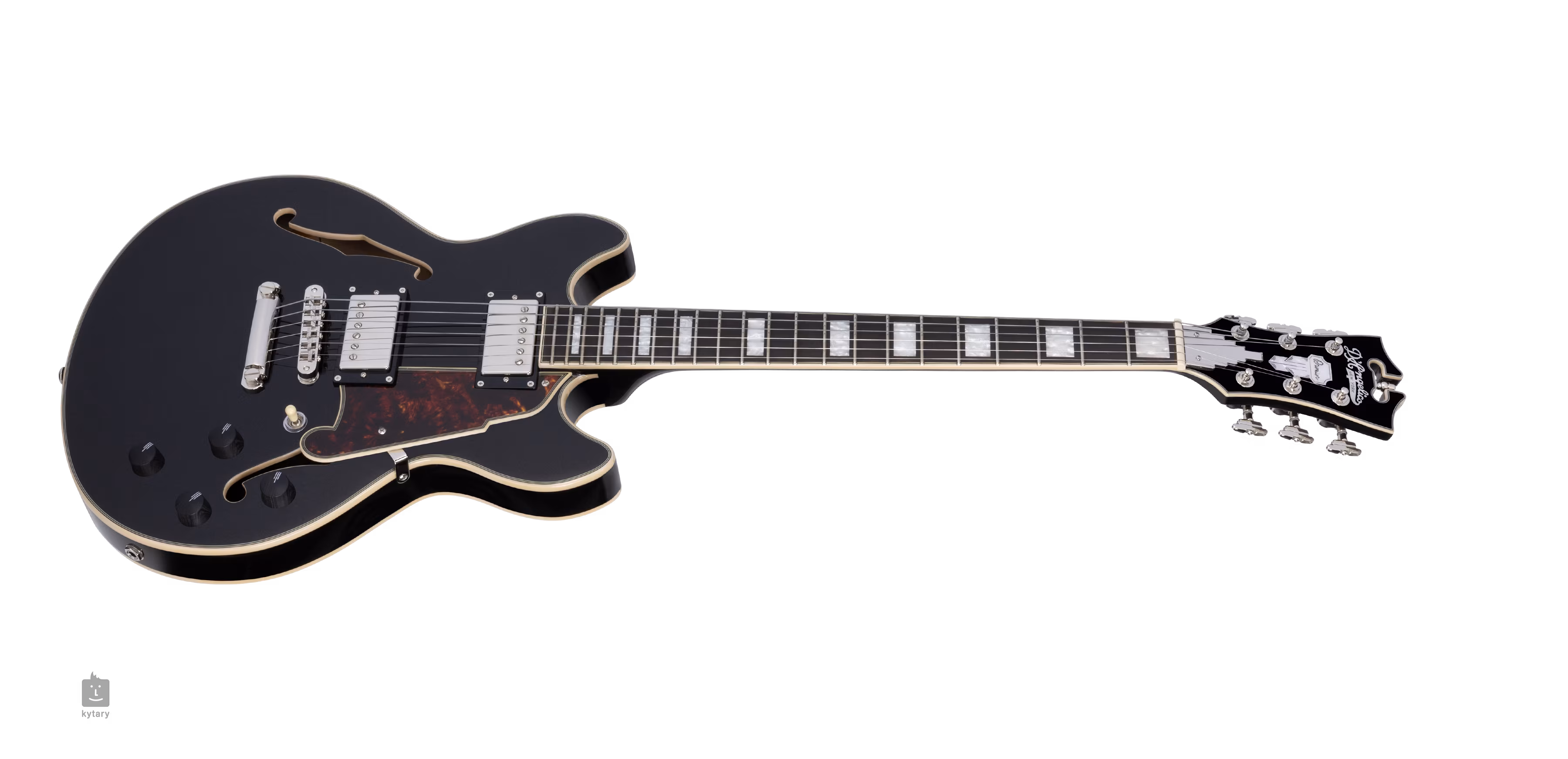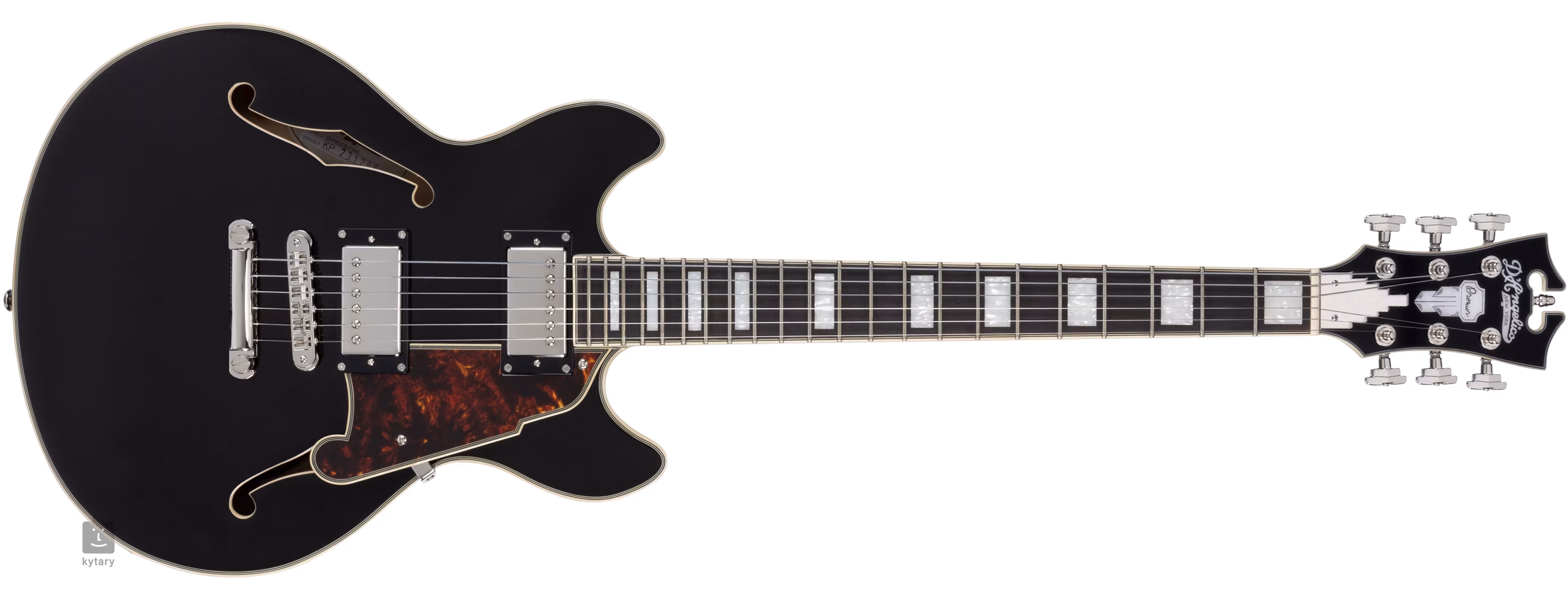 Telo gitary vyvažuje firemná signovaná Art Deco hlavica zdobená perleťovou intarziou a firemným logom. Stabilné ladenie a dobrý sustain zaručuje uchytenie strún cez nultý pražec Graphtech NuBone XL v kobylke Grover 109 Super Rotomatic a cez mostík TOM v priebežnej kobylke. Štýlový vzhľad gitary podčiarkuje lemovanie tela, hmatníka a hlavice a päťvrstvový pickguard Scalini.