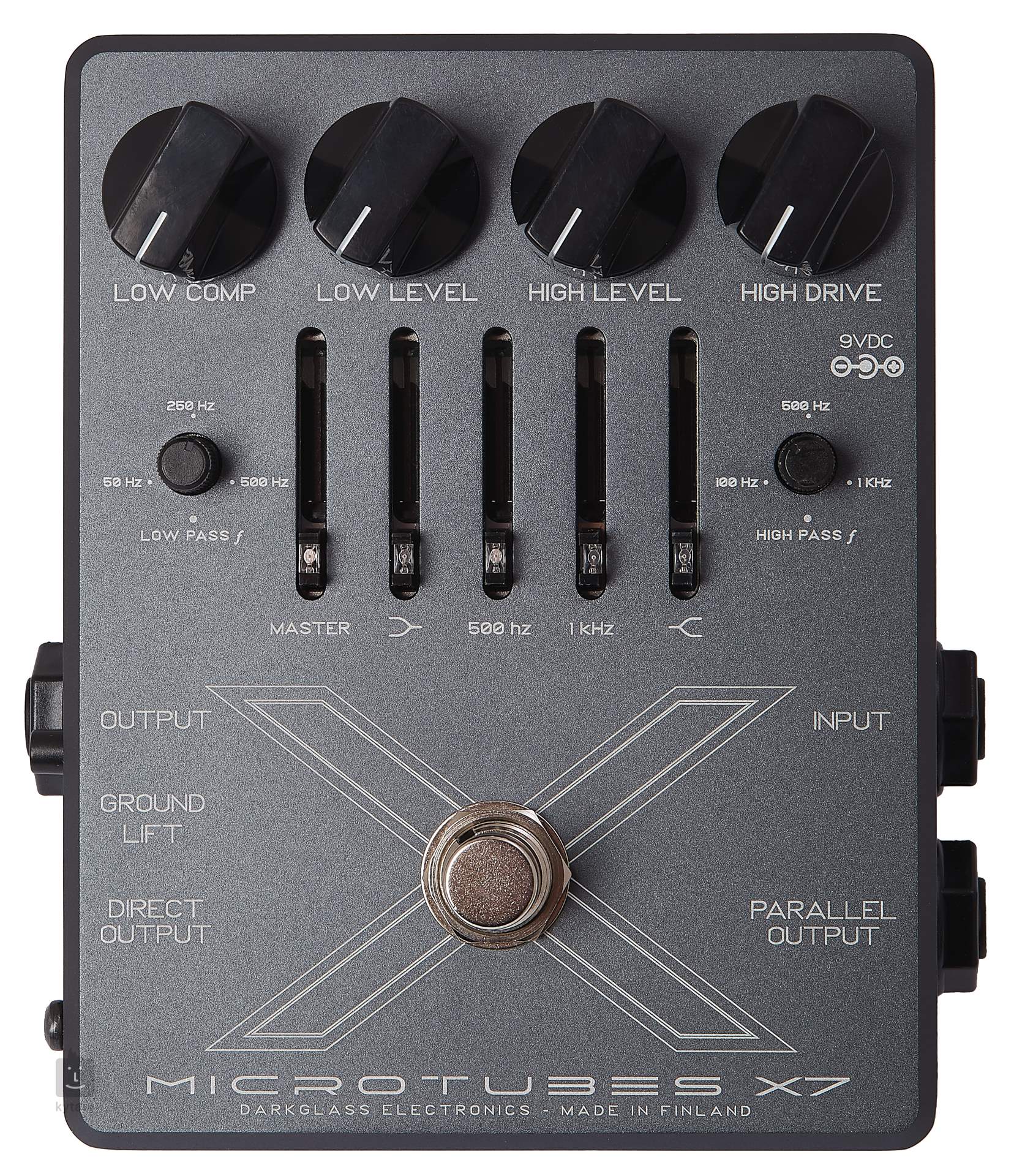 Spoločnosť Darkglass bola založená v roku 2009, ale odvtedy sa jej produkty stali populárnymi medzi desiatkami basgitaristov po celom svete. Medzi nich patria členovia kapiel ako Cannibal Corpse, Faith No More, Jamiroquai, Lamb of God, The Strokes, Suicidal Tendencies, Tony Levin a Devin Townsend. Všetci boli ohromení bezkonkurenčným zvukom, funkčnosťou a elegantným fínskym dizajnom. Teraz aj vy môžete na vlastnej koži zažiť kvalitu produktov Darkglass. Microtubes X7 je novinkou vo svete basových distortion efektov, ktorá poskytuje zvuk v štúdiovej kvalite aj pri živom hraní. Spektrum distortion efektov pokrýva všetko od výrazných overdrive a surových fuzz efektov až po moderné high gain efekty. Celková variabilita efektu je výrazne vylepšená flexibilnými ovládacími prvkami s prepínačmi Low Pass a High Pass Filter na zdôraznenie konkrétnych frekvencií. V porovnaní s modelom Microtubes X je X7 vybavený štvorpásmovým ekvalizérom, paralelným výstupom a výstupom DI XLR.