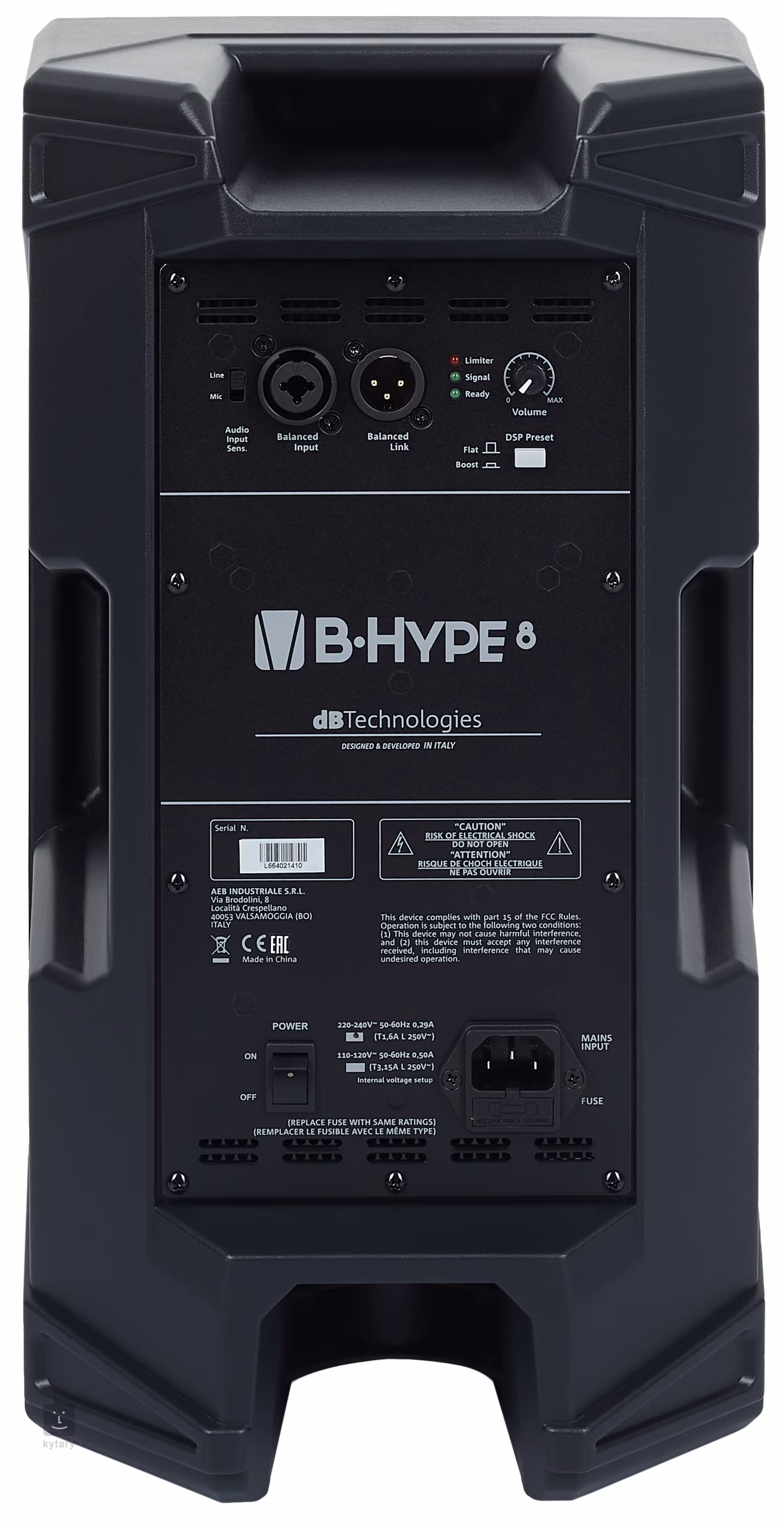 Séria B-Hype od talianskej spoločnosti DB Technologies ponúka profesionálne zvukové riešenia za veľmi prijateľnú cenu. Reproduktory tejto série sú vybavené zosilňovačom triedy D a sú schopné vysokého výkonu (až 126,5 dB s 15" reproduktorom) pri zachovaní veľmi vernej reprodukcie zvuku.