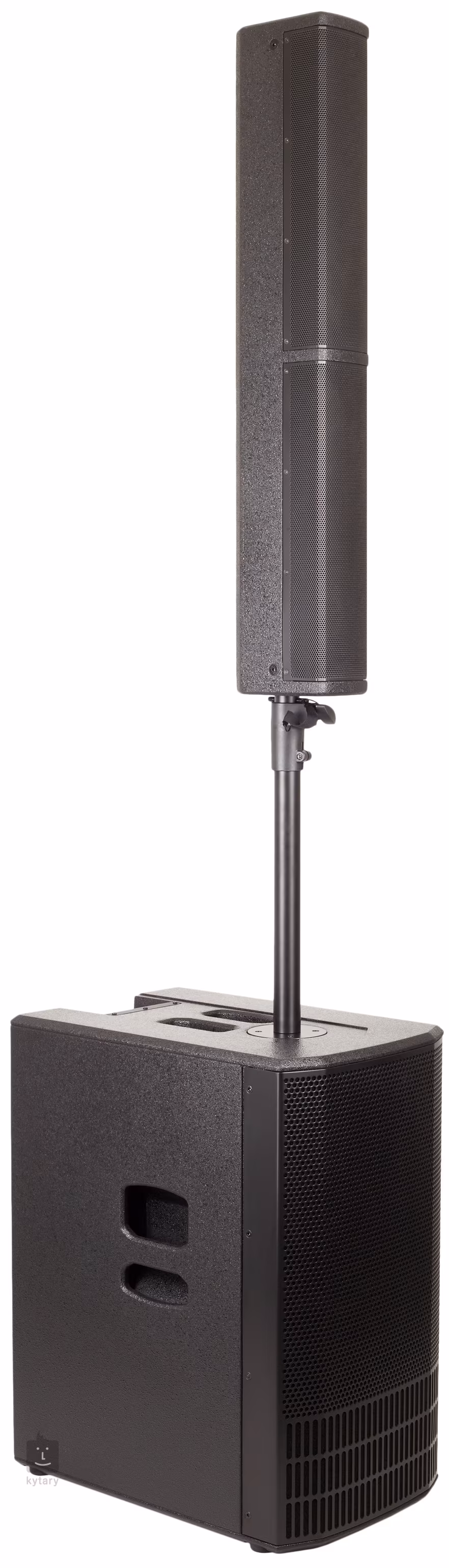 Dva 12" woofery sú umiestnené vo vnútri subwoofera, zatiaľ čo box výškového reproduktora ponúka osem 4" reproduktorov a spolu so zosilňovačom triedy D Bi-amp vytvára možný výkon až 1800 W. Výsledkom je brilantný, krištáľovo čistý zvuk s presnou kontrolou nad výstupným signálom. Na zadnej strane sa nachádza kombinovaný vstup XLR/TRS a stereo vstup RCA so samostatným ovládaním hlasitosti. Nájdete tu aj výstup XLR na pripojenie k inému PA, Speakon na pripojenie výškového boxu a prepínač ôsmich továrenských predvolieb EQ pre maximálnu flexibilitu reproduktorov.