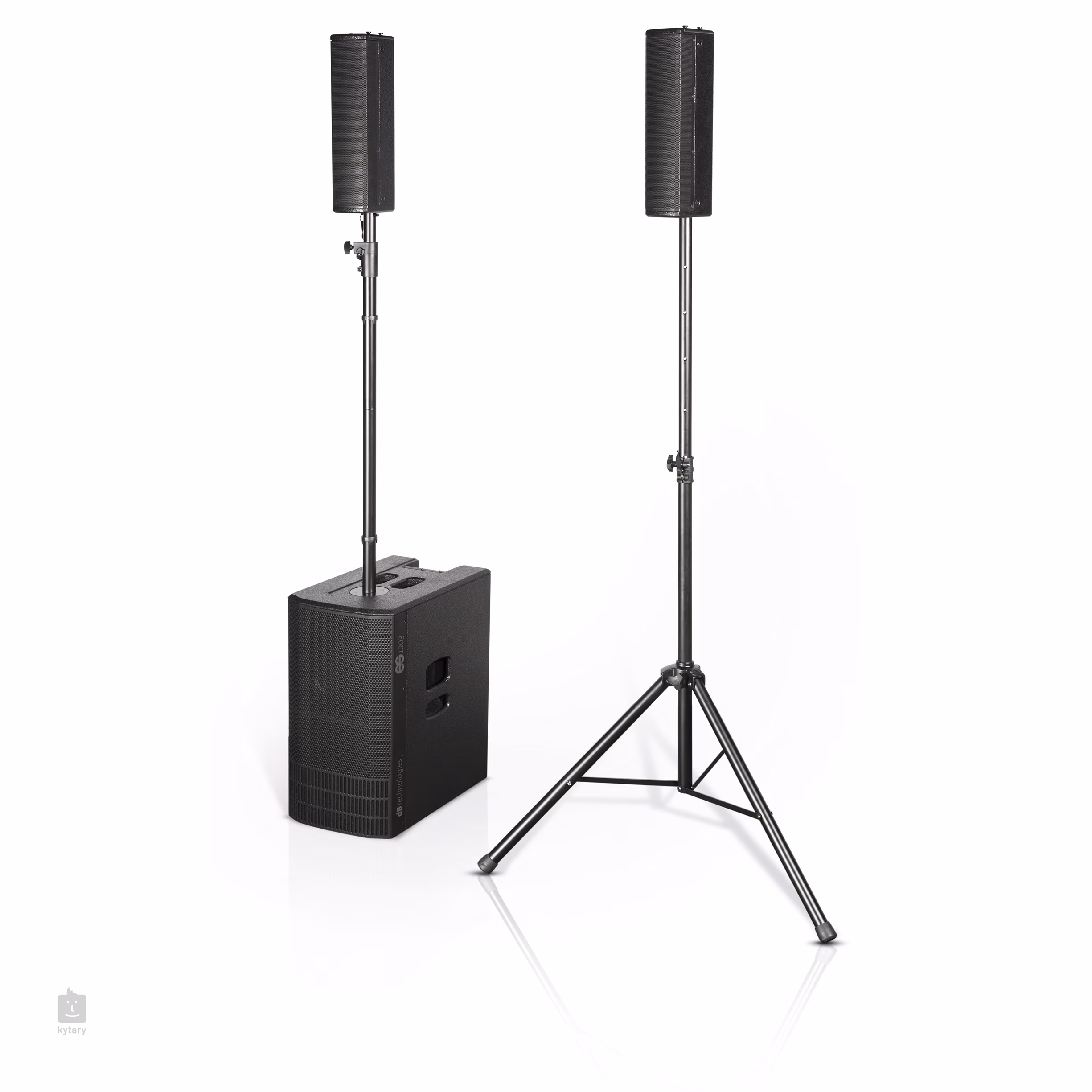 Aktívny stereofónny zvukový systém ES 1203 pozostáva z dvoch širokopásmových reproduktorov, z ktorých každý je vybavený štyrmi 4-palcovými reproduktormi, ako aj zo subwoofera s dvoma 12-palcovými reproduktormi. Srdcom systému je zosilňovač s technológiou Digipro G4 vybavený obmedzovačom a ochranou proti preťaženiu a prehriatiu. Užívateľsky prívetivé rozhranie DSP s displejom OLED a až päťkanálovým mixom umožňuje tri prevádzkové režimy Mono, Stereo alebo Double Column pri pripojení k inému zvukovému systému. Okrem troch kombinovaných vstupov je k dispozícii aj prijímač Bluetooth na externé prehrávanie zvuku napríklad z mobilného telefónu alebo MP3. Súčasťou balenia sú ochranné kryty na reproduktory. Konektor USB slúži na aktualizáciu firmvéru.