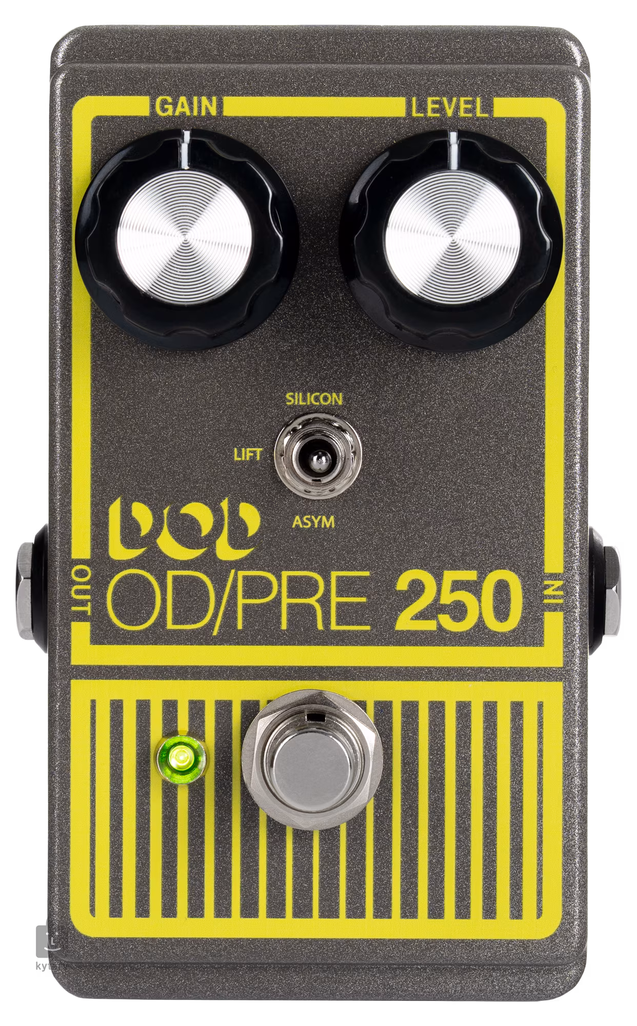 S tromi prepínateľnými režimami je to najuniverzálnejší DOD 250, aký kedy bol na scéne. Režim SILICON ponúka klasický zvuk kremíkových diód, ktorý preslávil pôvodný model, a poskytuje vám typický zvuk tohto legendárneho pedálu. Nový režim ASYM vás zavedie do sveta asymetrického clippingu a produkuje harmonicky bohatý overdrive charakteristický pre vintage germániové diódy. Tretí režim, LIFT, vám umožňuje úplne odstrániť diódové clipping zo signálnej cesty a použiť efekt ako čistý boost (alebo skreslený boost, ktorý môžete dosiahnuť preťažením vstavaného operačného zosilňovača LM741). Pedál je vybavený rovnakými dvoma potenciometrami Gain a Level, ktoré poznáme z klasického modelu DOD 250 – Gain sa používa na nastavenie množstva skreslenia, zatiaľ čo Level ovláda hlasitosť.