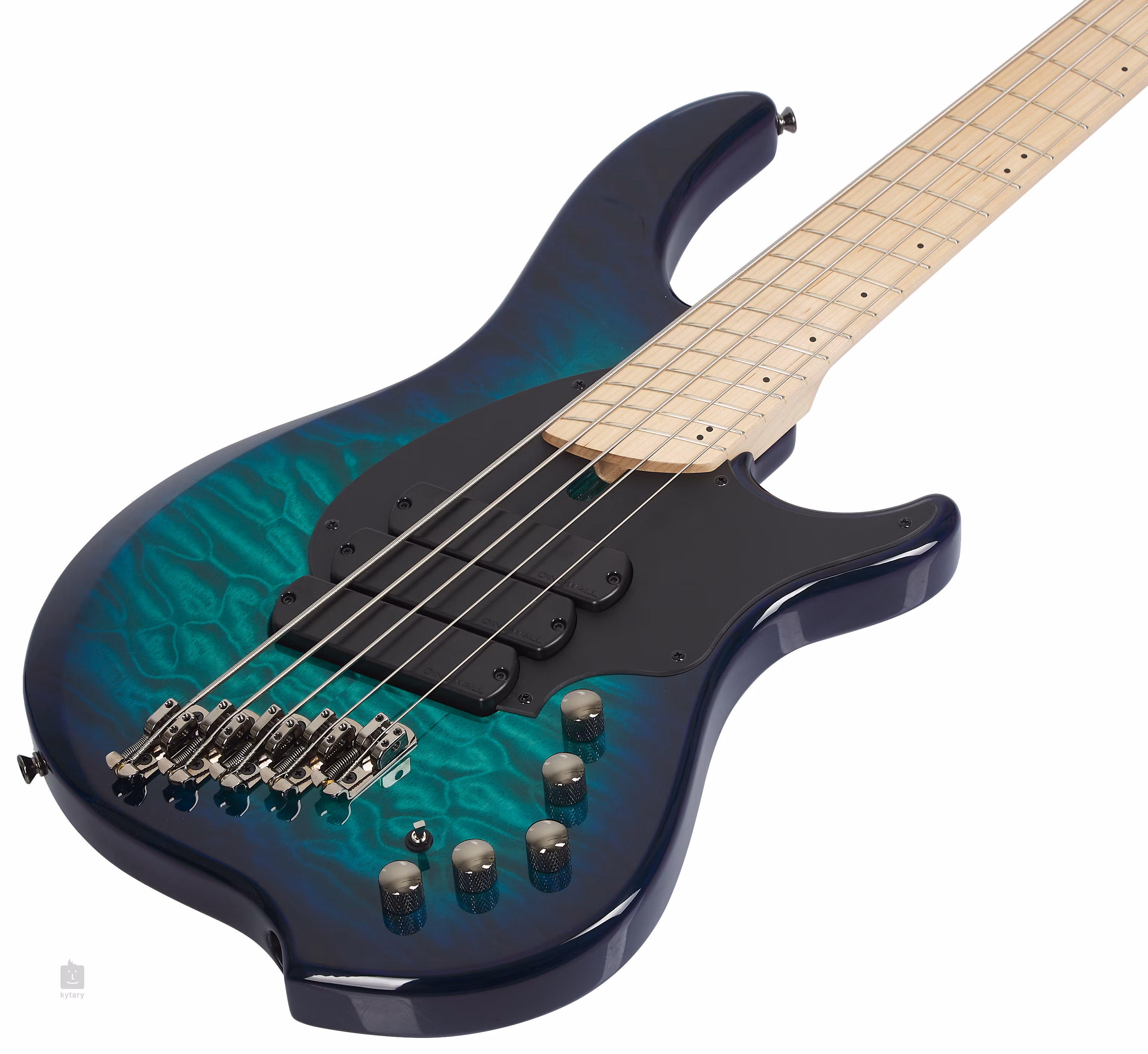 Päťstrunová basgitara zo série Combustion od spoločnosti Dingwall v ohromujúcej povrchovej úprave Whalepoolburst.