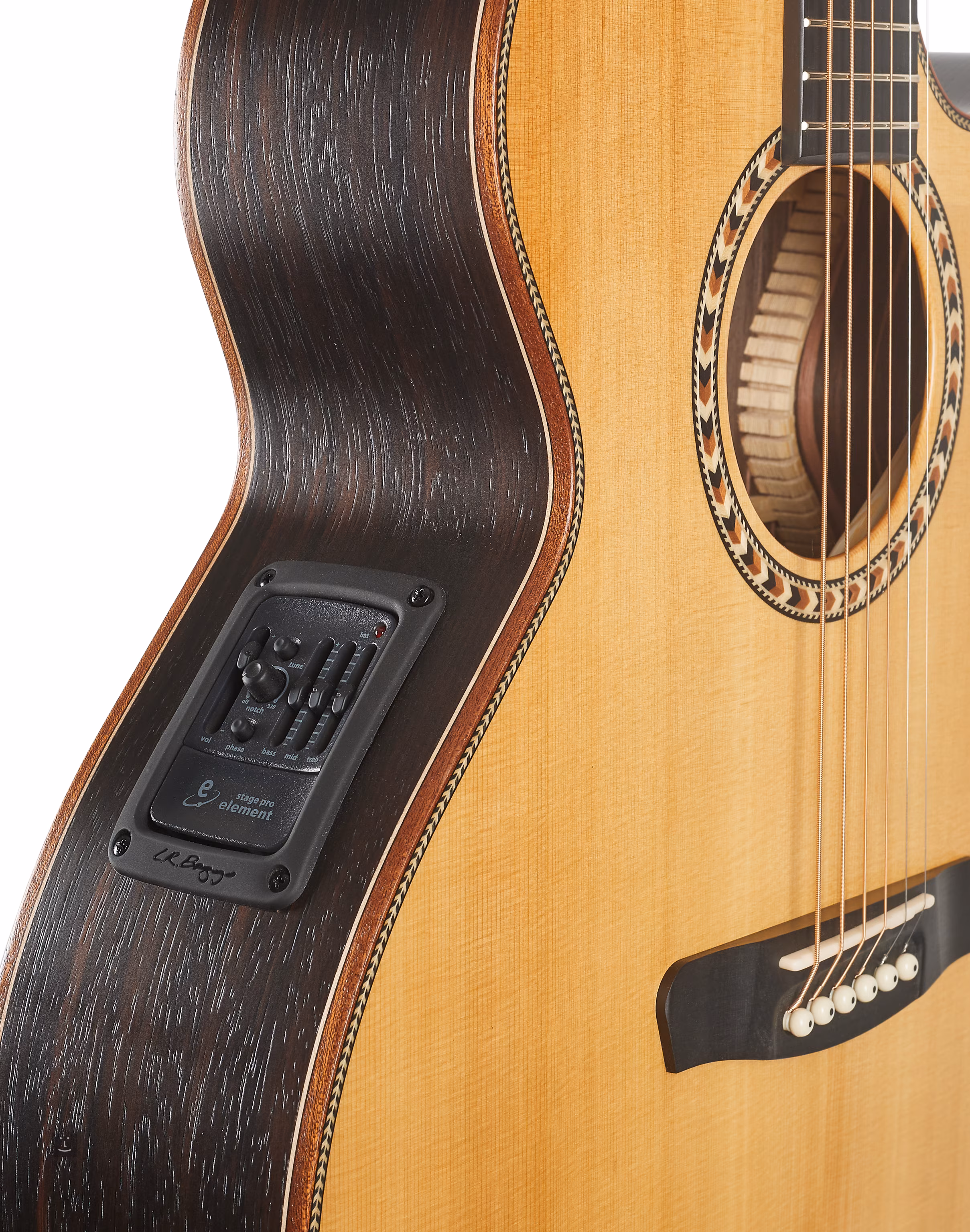 Elektronika L. R. Baggs StagePro Element představuje ideální řešení ozvučení akustických kytar. Preamp nabízí ovladač hlasitosti, zabudovanou ladičku, třípásmový ekvalizér a ovladače Notch Filter a Phase, kterými zkrotíte veškeré rušivé prvky a akustický zvuk nástroje tak vyzní v plné parádě.