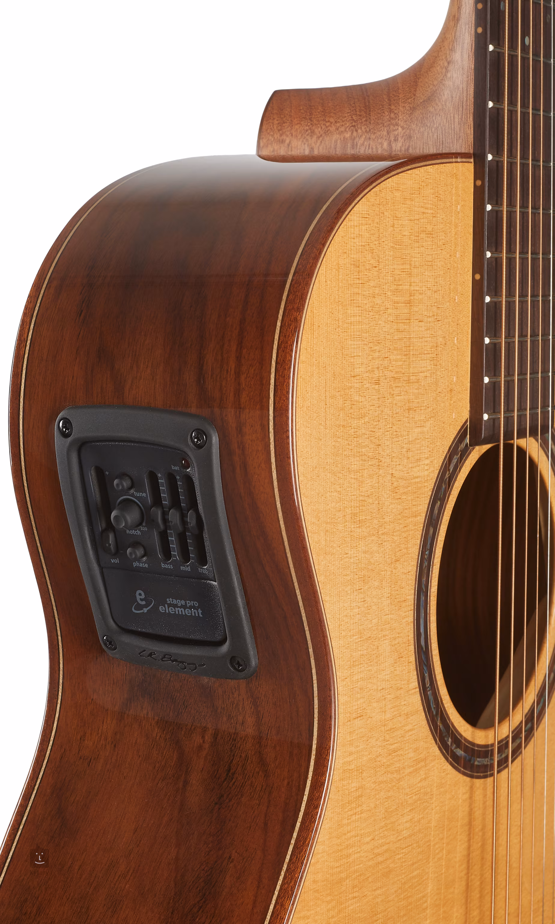 Elektronika L. R. Baggs StagePro Element představuje ideální řešení ozvučení akustických kytar. Preamp nabízí ovladač hlasitosti, zabudovanou ladičku, třípásmový ekvalizér a ovladače Notch Filter a Phase, kterými zkrotíte veškeré rušivé prvky a akustický zvuk nástroje tak vyzní v plné parádě.