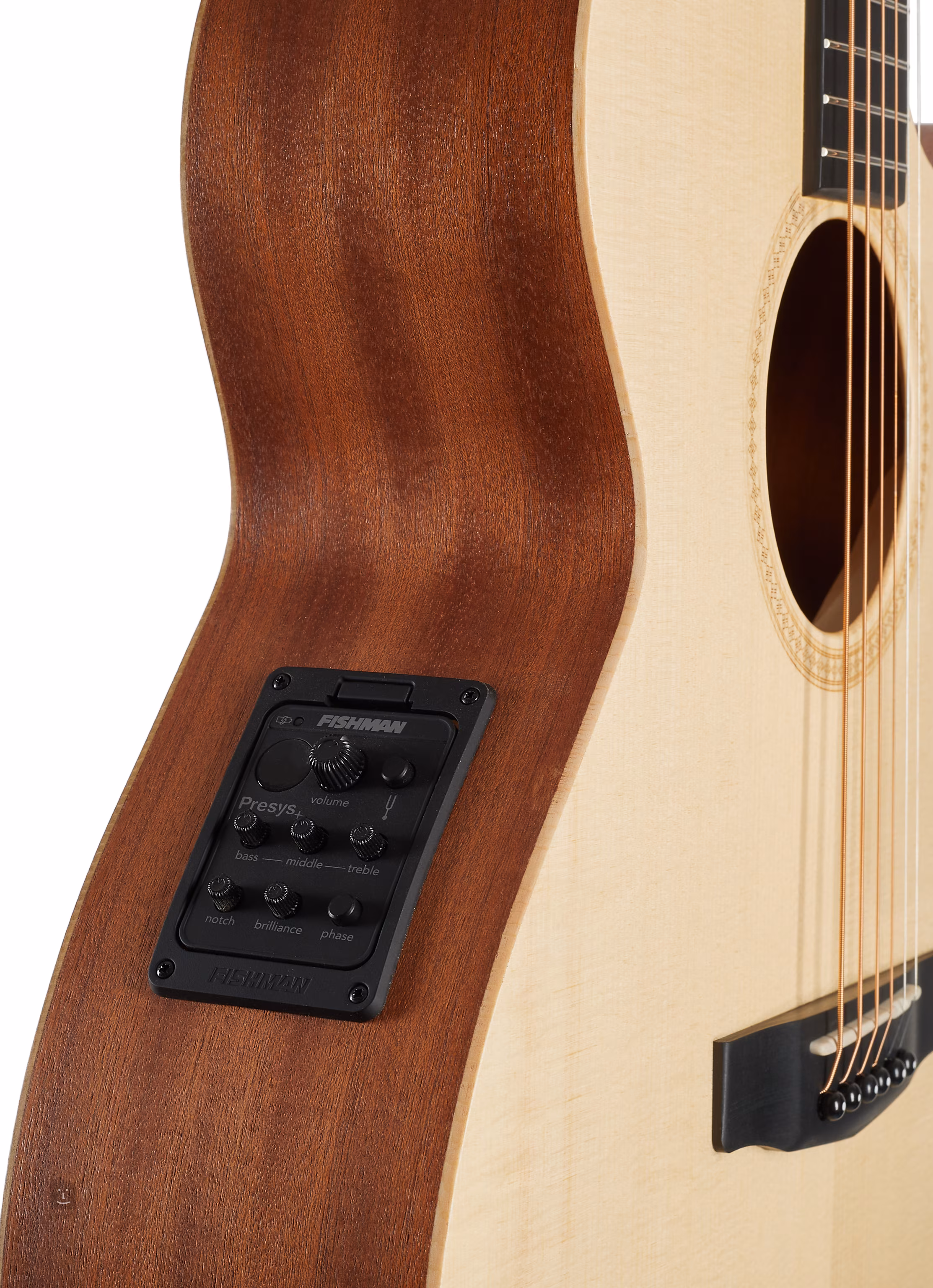 Predzosilňovač Fishman Presys+ v zadnej časti gitary spolu so subwooferom Fishman Sonicore predstavujú ideálne riešenie pre akustické gitary. Predzosilňovač je vybavený ovládačom hlasitosti, vstavanou ladičkou s LED displejom, trojpásmovým EQ doplneným ovládačmi filtrov Brilliance a Notch a funkciou Phase, ktorá obracia fázu a filtruje nežiaduce efekty spätnej väzby.