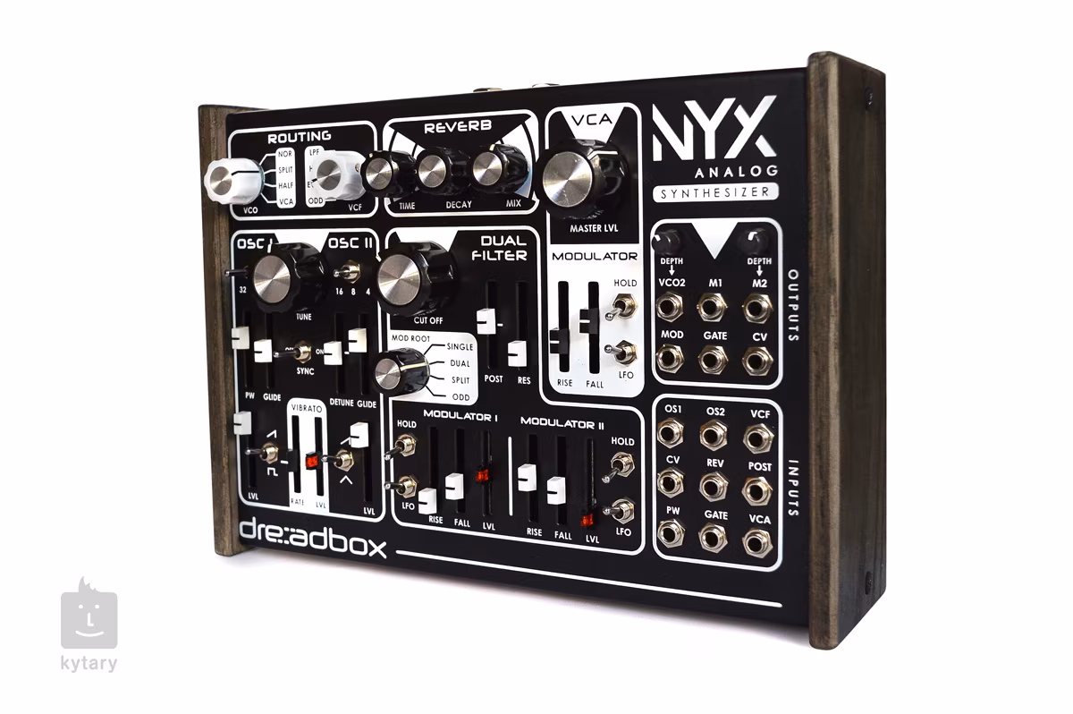 Nyx je parafonní analogový, semimodulární syntezátor se dvěma oscilátory, duálním filtrem, vynikajícím reverbem, a řadou patchpointů pro vytváření komplexních zvuků a modulací.