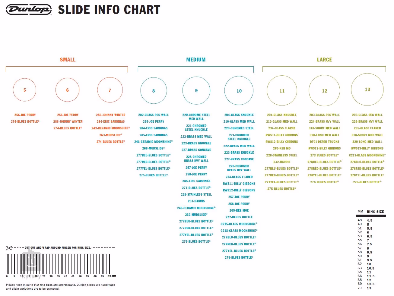 Mosadzný slide s postupne sa rozširujúcim profilom, navrhnutý v spolupráci s americkým blues-rockovým gitaristom Ericom Sardinasom.