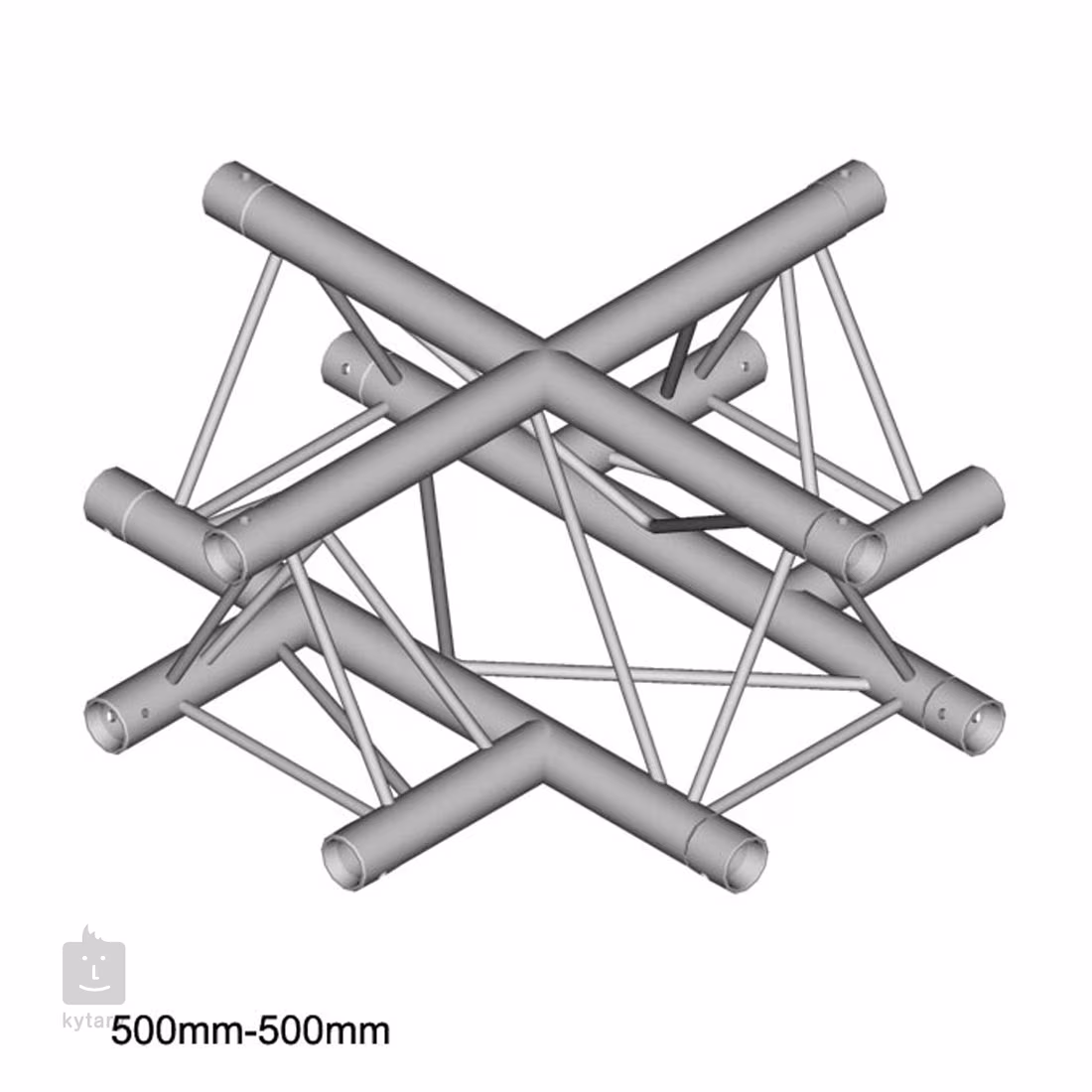 DuraTruss DT 23-C41 je spojovací díl tříbodové hliníkové konstrukce ve tvaru X. Díl slouží pro stavbu maximálně stabilních a bezpečných mobilních pódií. Díky inovativnímu spojovacímu systému zajišťuje bleskurychlou instalaci a demontáž, ideální pro časté používání. Trubky konstrukce jsou vyrobeny z robustního 35mm hliníku s 2mm tloušťkou stěny, což garantuje ideální poměr pevnosti a nízké hmotnosti. Spojovací trubky mají průměr 8 mm. Díky tomu je systém nejen odolný, ale také snadno přenosný a manipulovatelný. Součástí balení jsou veškeré potřebné spojovací komponenty.
