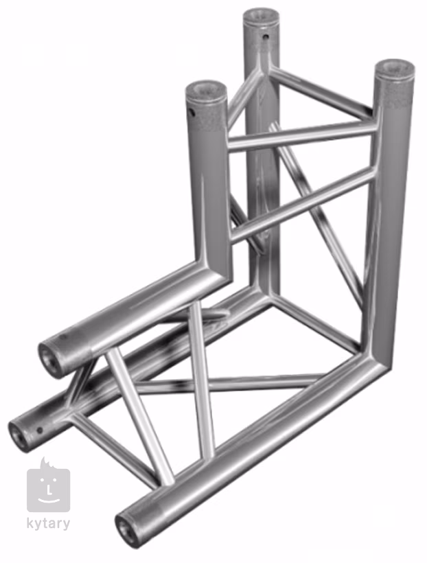Duratruss DT33/2-C25-D90 je rohový diel, ktorý spája dve vetvy konštrukcie pod uhlom 90° (s vrcholom trojuholníka v spodnej časti). Rýchloupínací systém umožňuje rýchlu konštrukciu, čo oceníte pri častej montáži a demontáži.